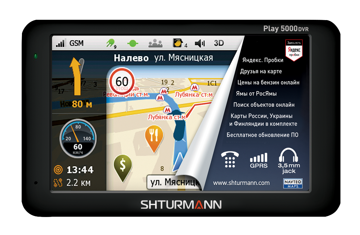 Навигатор Shturmann Play 5000 DVR поддерживает сервис Яндекс.Пробки, через Bluetooth DUN и навигацию, с возможностью прокладки маршрута в зависимости от загруженности трассы. В базе данных точек интереса содержится более 3 000 000 POI, среди которых актуальная база SpeedCam, опасные перекрёстки и повороты, парковки, достопримечательности и другая информация для водителей. Навигация Shturmann для мультимедийного гибрида Play 5000DVR включает в себя карты России, Украины и Финляндии от NAVTEQ. Покрытие картографии составляет более 2 000 000 км российских, более 480 000 км финских и более 350 000 км украинских дорог. Навигатор Shturmann Play 5000DVR размещается в корпусе толщиной 10 мм и оснащен громкой связью с технологией подавления эха DSP echo-cancellation. Рекомендованная стоимость модели составляет 5 990 руб.