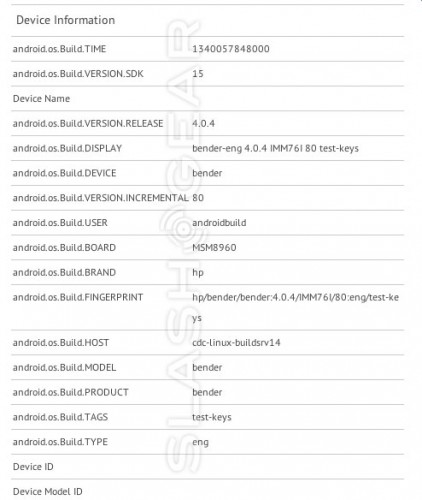 Компания HP, вполне возможно, вернется на рынок смартфонов, но будет выпускать модели уже не на основе webOS (приобретенной вместе с Palm), а на базе популярной операционной системы Android. В бенчмарке GLBenchmark появилось упоминание о тестах устройства под кодовым названием HP Bender. Пока информации о данной модели немного, указано лишь, что она построена на четырехъядерном процессоре Qualcomm S4, работает под управлением ОС Android 4.0.4 Ice Cream Sandwich и оснащена дисплеем с разрешением 1366 x 720 точек.
