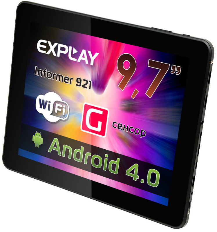 Следующая модель – Explay Informer 921 оснащается уже 9,7-дюймовым IPS экраном разрешением 1024х768, процессором BoxChip A10. Wi-Fi модулем, miniHDMI разъемом, 3.5 мм аудио разхемом и возможностью использовать внешние 3G модемы, подключаемые к USB разъему. Работает данная новинка под управлением операционной системы Android 4.0 Ice Cream Sandwich. Для возможности вести видеоконференции, на фронтальной стороне планшета производитель расположил камеру (в дополнение к основной, расположенной на задней стороне), микрофон и динамики. Внутренняя память аппарата составляет 8 Гб, которая расширяется за счёт возможности использования microSD карт памяти объемом до 32 Гб, а объем оперативной памяти – 1 Гб.