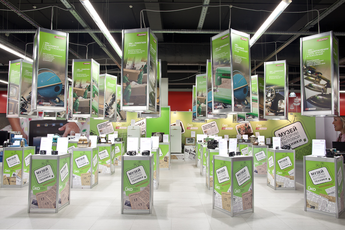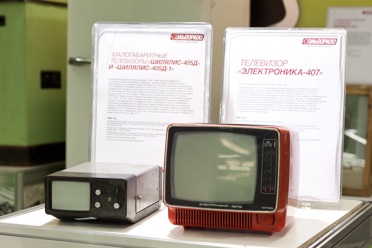 На прошлой неделе в Москве открылся «Музей истории бытовой техники» компании «Эльдорадо». Он расположен в магазине сети в ТЦ «Л-153» (ст.м.Братиславская, ул. Люблинская, 153). Выставка собрала экспонаты различных периодов XX века, от совсем старых моделей фотоаппаратов и телевизоров и до первых мобильных телефонов и ноутбуков.