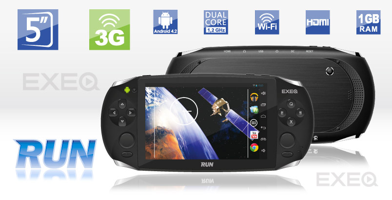 Бренд Exeq, крупнейший российский производитель игровых консолей, представляет новую яркую новинку – игровую Android-консоль со встроенным модулем 3G – Exeq Run!