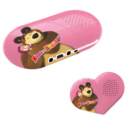 Новинка Ritmix SP-333 M - это компактная акустическая мини-система с чистым звучанием и корпусом-трансформером, оформленным принтами из мультсериала "Маша и Медведь". Корпус колонки можно сложить в форме сердца. Акустика совместима с большинством мультимедийных устройств (мобильные телефоны, MP3-плееры, компьютеры, ноутбуки, планшеты и так далее), она обеспечивает воспроизведение музыки и с карт памяти microSD.