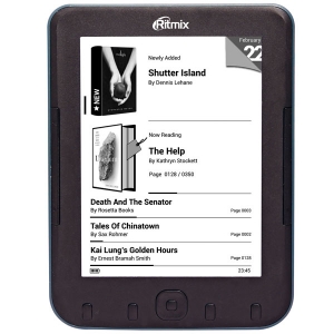 В январе компания Ritmix анонсировала выход двух новых электронных книг: ридера на E-ink-чернилах RBK-610 и RBK-499 с Wi-Fi-модулем. Ritmix RBK-620 - это классическая электронная книга в тонком (всего 8 мм) корпусе с закругленными краями. Ридер оснащен 6-дюймовым E-ink-дисплеем с разрешением 600x800 точек. Ritmix RBK-620 поддерживает девять текстовых форматов, в том числе и DJVU, также он может демонстрировать изображения.