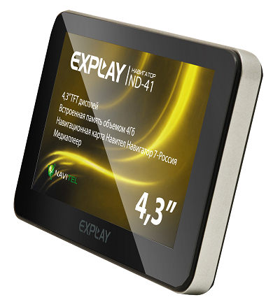 Компания Explay представила две бюджетные модели GPS-навигаторов, работающие с предустановленными картами Навител-7. Модели схожи по аппаратной составляющей и отличаются лишь внешними данными. Навигатор Explay ND-41 имеет 4,3’’ TFT дисплей с разрешением 480х272 пикселей, встроенную память 4 ГБ и слот для расширения памяти microSD до 16 ГБ. Также устройство обладает довольно тонким корпусом - 122 х76 х10,5 мм, и весом в 133 грамма. Рекомендованная розничная цена за эту модель составляет 1999 рублей.