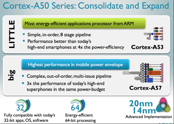 Компания Samsung, как и ожидалось, не слишком отстанет от компании Apple в деле внедрения 64-битных процессоров. В настоящий момент модель чипсета с таким процессором находится в завершающей стадии разработки. Проектирование ведется на основе архитектуре ARM Cortex-A50. Стоит также отметить, что с производством процессоров этого типа у Samsung проблем не возникнет — корпорация сохранила партнерские отношения с Apple и занимается изготовлением процессоров А7 на своих мощностях. Точных данных о том, когда и как в Samsung планируют запускать 64-битные процессоры своего производства не сообщается, но вероятнее всего это будет чипсет серии Exynos и найдут они применение в следующем флагманском аппарате. Возможно он будет называться Samsung Galaxy S5. Также 64-битные процессоры Samsung планирует использовать в планшетах.