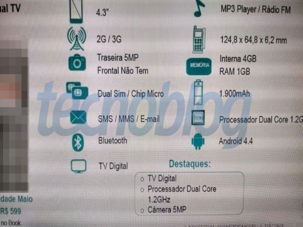 Кроме того, представленная новинка, работающая под управлением операционной системы Android 4.2 Jelly Bean, поддерживает работу двух SIM-карт и имеет 5 МП основную и 2 МП фронтальную камеры, 4 Гб встроенной памяти и поддержку microSD карт памяти.