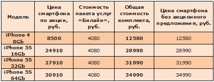 Оператор мобильной связи Билайн» заявил о продолжении формирования выгодных пакетных предложений, представив новые выгодные условия для покупателей iPhone 4 и 5s по России.