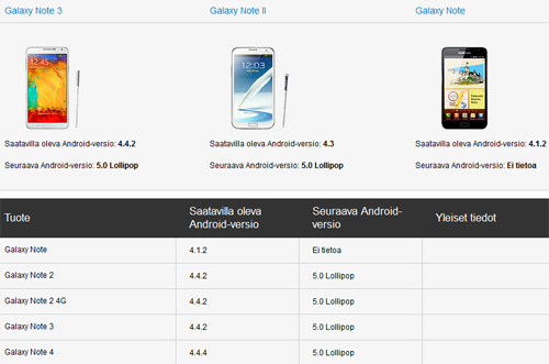 Финское подразделение компании Samsung опубликовало табличку со списком устройств, которые будут обновлены в ближайшее время. Стоит отметить, что в ней присутствуют не только сравнительно новые аппараты и текущие флагманы, но и уже довольно старые аппараты. В том числе в очереди на получение ОС Android 5.0 значится Galaxy Note 2. Появление этой модели выглядит сюрпризом, поскольку он вышел на рынок в сентябре 2012 года, а компания Samsung придерживается принципа 2 больших обновлений или 2 лет поддержки устройства, в зависимости, что раньше.