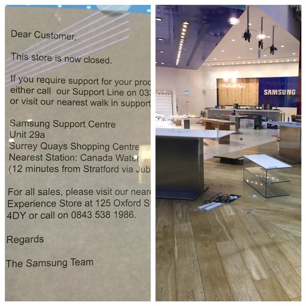 Компания Samsung закрыла свой флагманский магазин в Британии, располагавшийся в Восточном Лондоне. Магазин именовался Samsung Experience Store и размещался в торговом центре Westfield Stratford City. Предупреждение о закрытии было размещено на дверях магазина еще во вторник, а с сегодняшнего дня он прекратил работу полностью. В то же время девять других фирменных магазинов компании свою работу продолжат, хотя ни один из них не идет в сравнение с флагманским, который был создан в противовес магазинам Apple и выбирался для локальных презентаций продуктов.