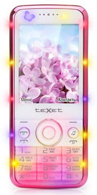 Компания teXet представила не совсем обычный аппарат, который позиционируется как телефон для молодых гламурных барышень. На практке это стандартный кнопочный мобильный телефон с базовым набором опций. Он включает 1,3-МП камеру, 2,4-дюймовый экран с разрешением 320 х 240 точек, модуль Bluetooth, FM-радио проигрыватели музыки и видео, 64 МБ памяти и слот для карт формата MicroSD емкостью до 16 ГБ. Телефон поддерживает сети GSM/GPRS и может работать с двумя SIM-картами одновременно.