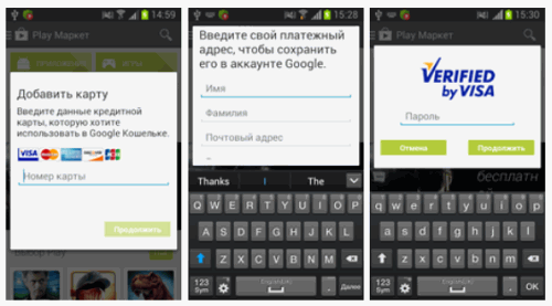 После установки и запуска троянец пытается получить полномочия администратора мобильного устройства, для чего с периодичностью в 0,1 секунды демонстрирует соответствующий системный запрос, фактически не давая пользователю возможности отменить это действие. Таким образом, вредоносная программа обеспечивает себе определенный уровень защиты от возможного удаления в дальнейшем. Для того, чтобы заполучить платежные реквизиты используемой банковской карты, Android.BankBot.21.origin проверяет, активно ли на мобильном устройстве окно приложения Google Play, и, если это так, имитирует стандартную форму привязки карты к учетной записи пользователя.