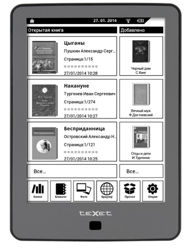Также в память новой электронной книги загружена мини-библиотека - подборка лучших произведений на русском и английском языках. С легкостью читать последние поможет предустановленный англо-русский словарь. Для просмотра перевода достаточно выделить слово в тексте. Полиглоты могут самостоятельно расширять лексическую базу устройства за счет новых словарей. Обширный функционал teXet TB-176FL вместился в компактный корпус толщиной 10 миллиметров и весом чуть больше 200 граммов. Помимо microUSB-кабеля и сетевого адаптера, в комплект рижера входит новый фирменный чехол teXet. Рекомендованная розничная цена электронной книги teXet TB-176FL составляет 4999 рублей.