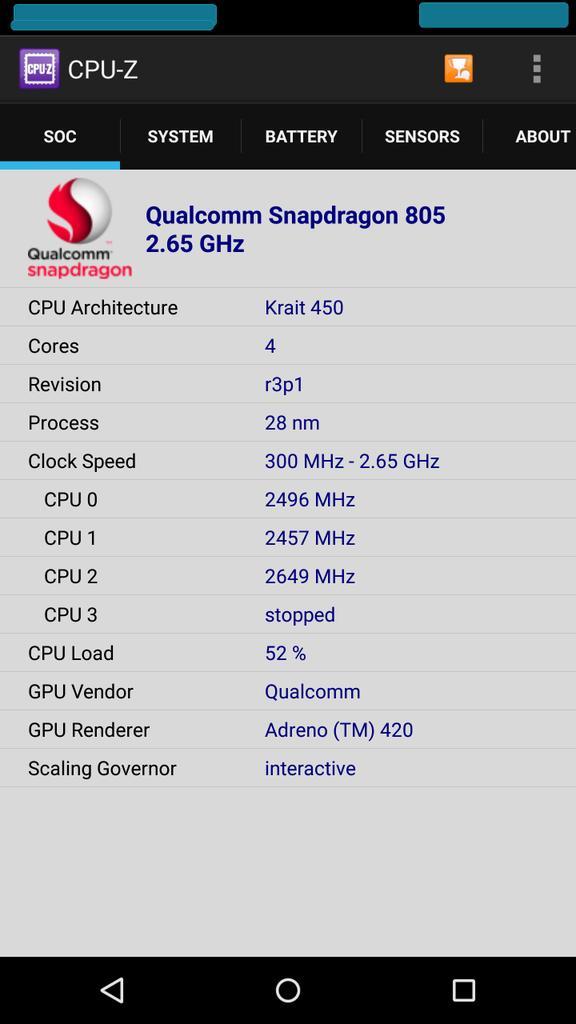 Смартфон Motorola Shamu, который является одним из главных претендентов на то, чтобы стать Nexus 6 попал в списки устройств протестированных бенчмарком CPU-Z. Crhbyijns результатов были размещены в твиттере. Интересно не только то, что в мультиядерном тесте Geekbench он набрал 3199, что больше, чем результаты новых iPhone, но и то, что приводятся данные об аппаратной платформе смартфона. Модель построена на базе чипсета Qualcomm Snapdragon 805 с четырьмя ядрами Krait 450 имеющими тактовую частоту 2.65 ГГц и 3 ГБ оперативной памяти.