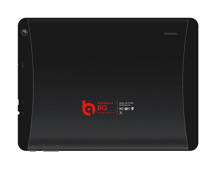 Второй планшет BQ-9702G с диагональю экрана 9,7”, выполнен в классическом стиле. В корпусе устройства используются металлические элементы. Внутри гаджета находится двухъядерный процессор MediaTek MT8312, аккумулятор на 6000 мАч, обеспечивающий не менее пяти часов активной работы. Модель также имеет модули Wi-Fi и 3G для выхода в Интернет.