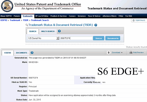 Компания Samsung зарегистрировала торговую марку S6 Edge+. Это может являться подтверждением планов по выпуску модели Samsung Galaxy S6 Edge Plus, о которой до этого уже было известно по слухам. Устройство, очевидно, станет модификацией Samsung Galaxy S6 Edge с большим размером экрана. По неофициальной информации, новинка получит 5,7-дюймовый сенсорный дисплей с разрешением Quad HD (2560 x 1440 точек).