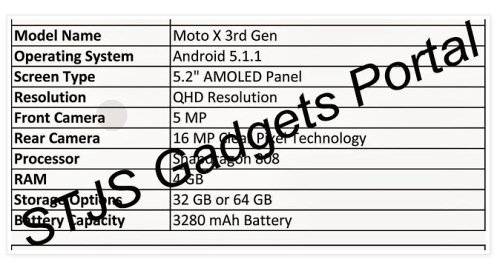 В сеть попала информация о новом смартфоне Moto X, который станет наследником одноименной модели прошлого года - Moto X (2014). Предполагается, что новинка будет представлена этим летом. Новый флагман Motorola будет построен на процессоре Qualcomm Snapdragon 808, получит 4 ГБ памяти RAM, 32 или 64 ГБ встроенной памяти, а его дисплей будет 5,2-дюймовым QHD AMOLED.