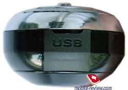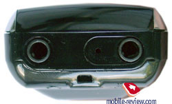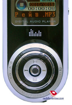 В верхней части лицевой панели находится небольшой прямоугольный дисплей, под ним расположен круглый блок управления. На нижнем скругленном торце расположен разъем USB, прикрытый жесткой пластиковой заглушкой. Заглушка не очень удобна, но функции свои выполняет. На правой боковой панели находится переключатель блокировки клавиш, левая, так же как и задняя, оставлена пустой. Большую часть задней панели занимает крышка батарейного отсека. На верхнем торце плеера находятся разъемы линейного входа и наушников, а также отверстие встроенного микрофона.