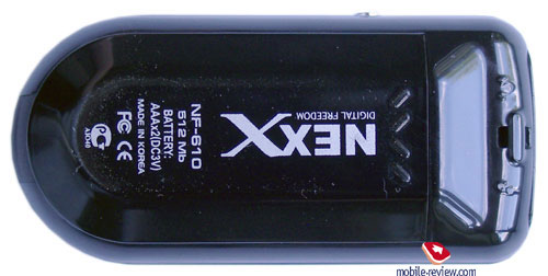 В том, что касается удобства использования, меню NF610 можно охарактеризовать как среднее. Горизонтальное расположение пунктов обусловлено положением и размерами дисплея. Питание и подключение к ПКВ качестве источника питания в плеере используются две батареи типа ААА, что может пригодиться в поездке, когда нет регулярного доступа к электросети для подзарядки аккумуляторов. Кроме того, подобное решение существенно удешевляет плеер в целом. Батарейный отсек занимает большую часть корпуса. Доступ в него осуществляется с задней панели, отек закрыт хорошо зафиксированной сдвижной крышкой.