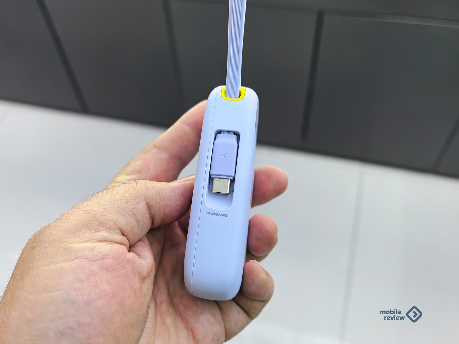Достаточно небольшой, хвостик из провода, встроенного в корпус, позволяет носить его в руках. Многие пользователи хотят носить свою батарею именно так, когда заряжают телефон. Вспоминаем также о ярких цветах, которые предпочитают в Китае.