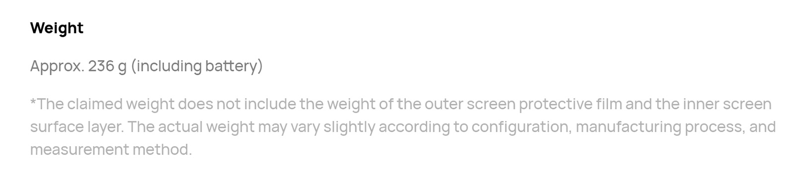 Один из свежих примеров, которые не влияют на восприятие модели, но иллюстрируют тот же подход. В Huawei заявляют вес для Mate X7 как 236 грамм, но в описании есть сноска: без учета пленки на внешнем и на внутреннем экранах. Мы всегда измеряем и взвешиваем устройства, чтобы избежать ошибок, с пленками получается 240 грамм. Не принципиально, но это ровно такое же «улучшение», как в истории от Honor, оно дает мнимый выигрыш. Новая модель якобы чуть легче Mate X6, в реальности это не так.
