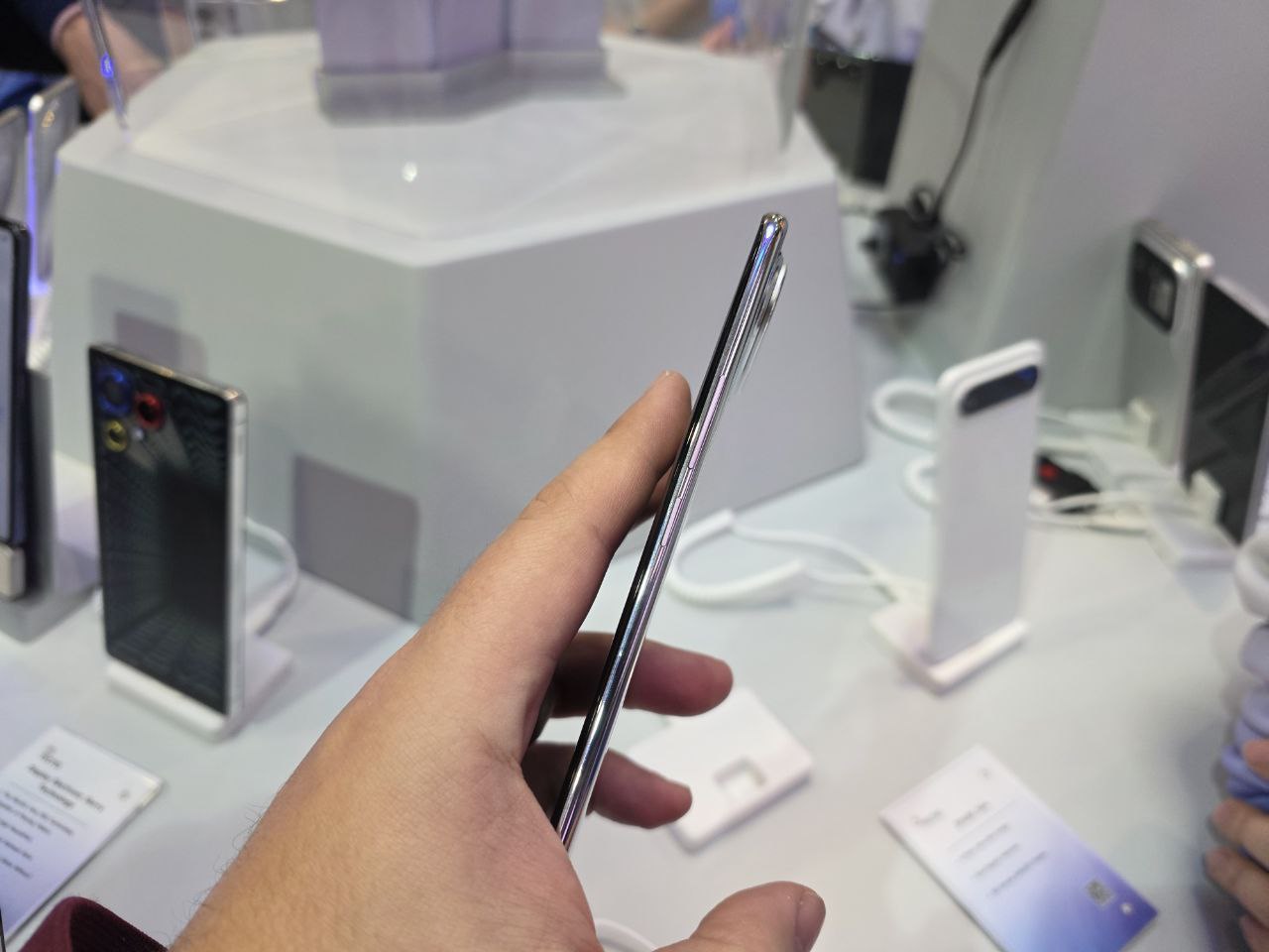 Еще одна история, которая меня ставит в тупик. В феврале этого года на MWC рассматривал Tecno Spark Slim, тонкий смартфон в корпусе из нержавеющей стали. Начали его создавать осенью 2024 года, к выставке в Барселоне модель была более-менее готова, оставался открытым вопрос стоимости на полке тех стран, что готовы покупать такой аппарат.
