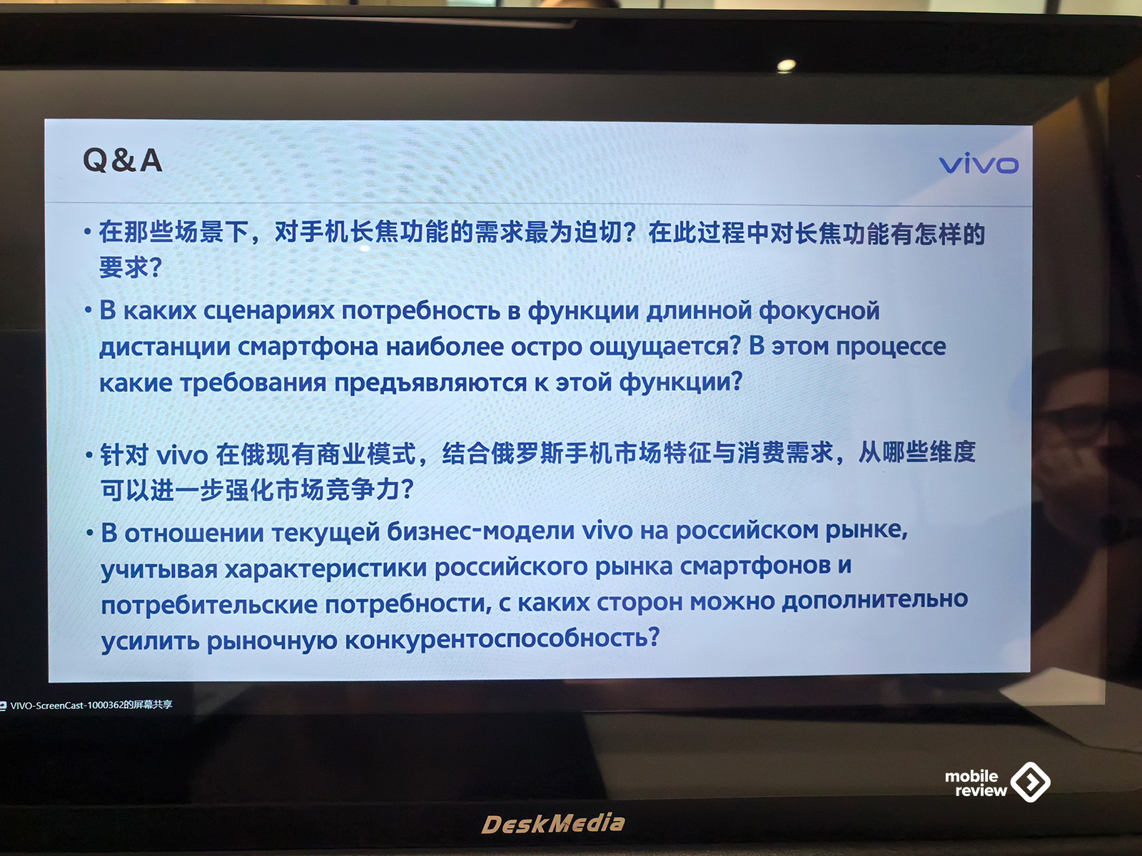 Во время посещения штаб-квартиры и индустриального парка vivo у нас была встреча с руководством компании. Топ-менеджеры, отвечающие за внешние рынки, в том числе российский, поделились своим видением нашего рынка и каналов продаж. Идя на сессию вопросов-ответов, мы удивленно взирали на большой зал, в котором было под тридцать наших соотечественников. В компании решили, что будет уместно объединить журналистов и слушателей программы MBA из МГУ. Изначально предполагалось, что никакие каверзные вопросы мы задавать не будем, послушаем рассказ и на этом закруглимся. Но дальше все пошло не по плану.