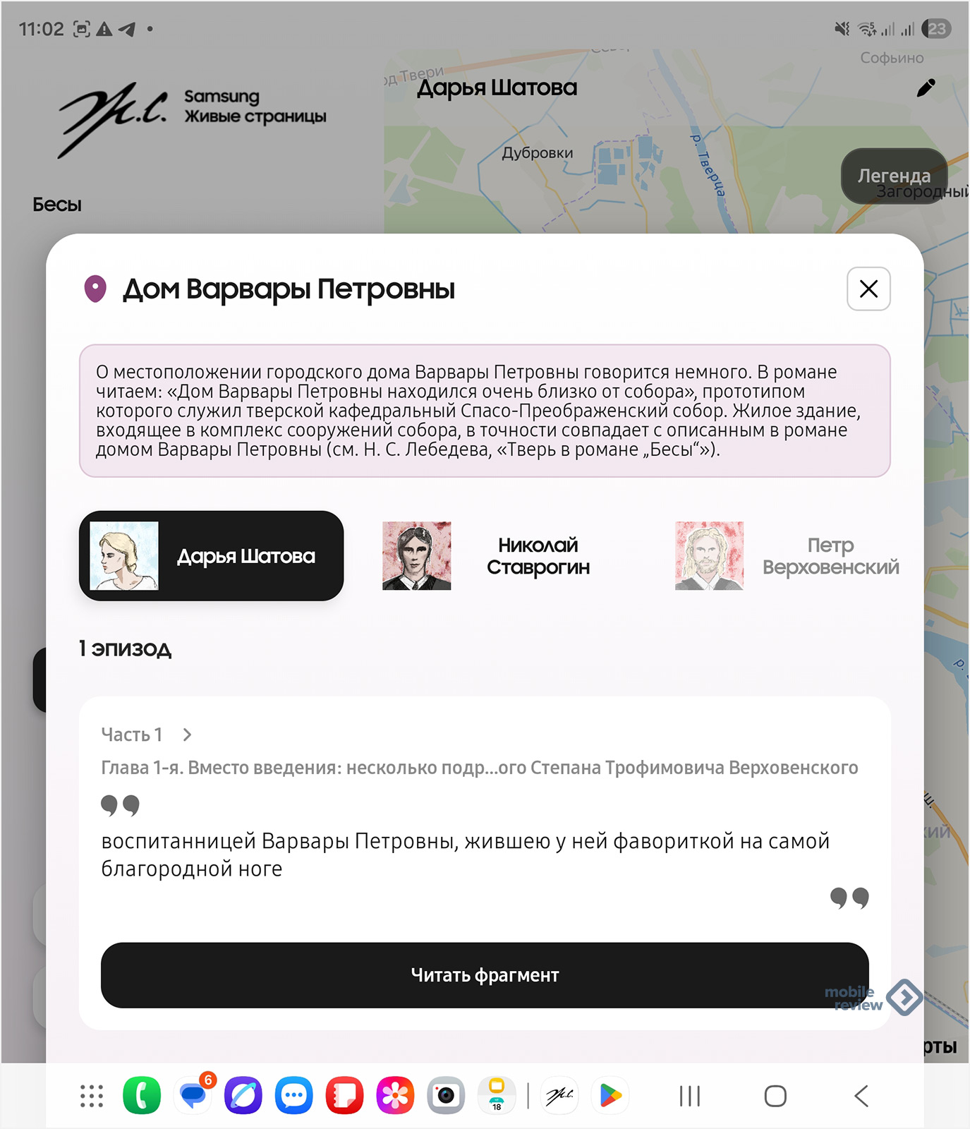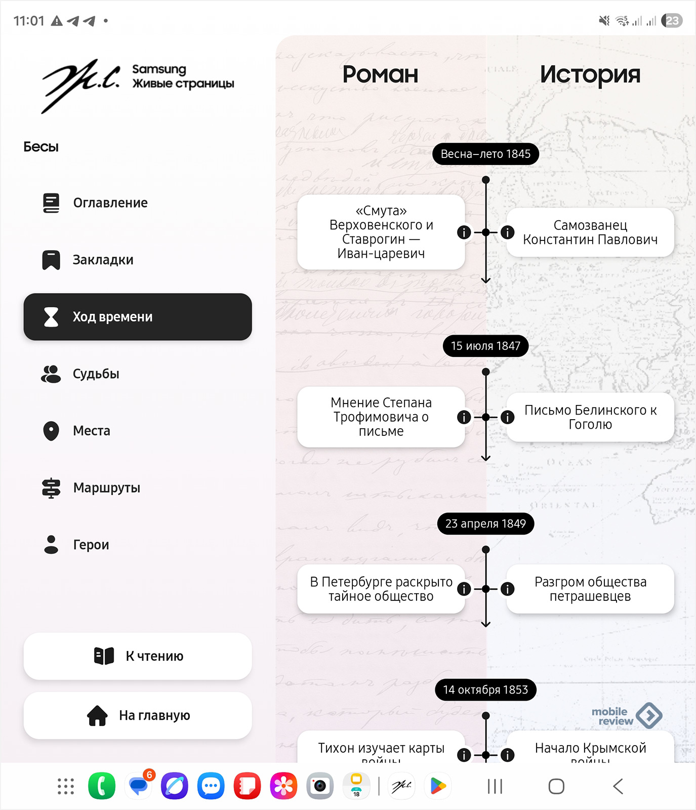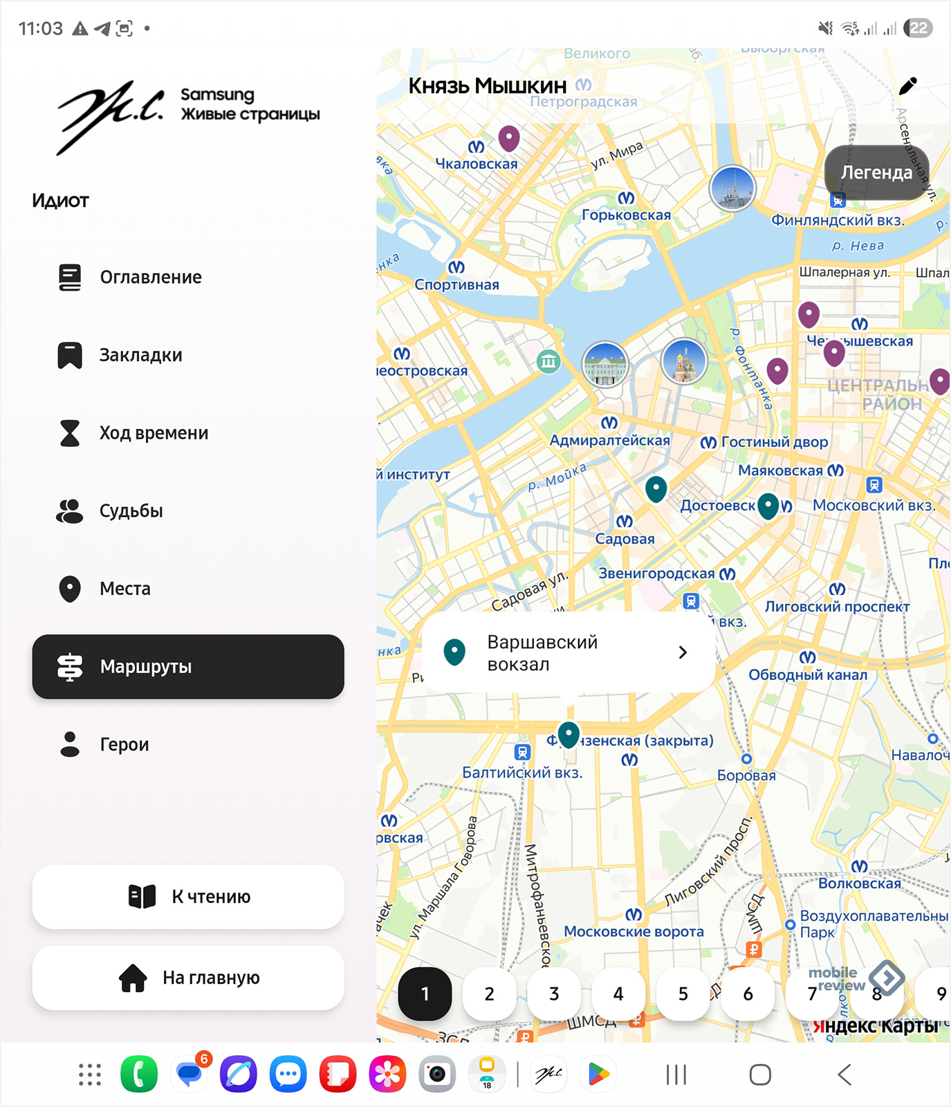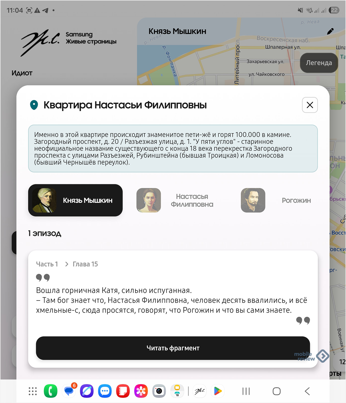 Компания Samsung десять лет развивает в России проект «Живые страницы», приложение для чтения книг, в котором есть как классика, так и современные авторы. Всего несколько десятков книг, каждая из них сильно переработана и дополнена. Идея приложения в том, чтобы не просто дать цифровую копию книги, но добавить хронологию, маршруты персонажей, которые можно посмотреть на карте, пересечение героев в книге. Одним словом, этакий интерактив, который позволяет глубже погрузиться в книгу или погулять по тому же Питеру, разглядывая практически те же дома и улицы, в городе мало что изменилось, и легко погрузиться в правильную атмосферу.