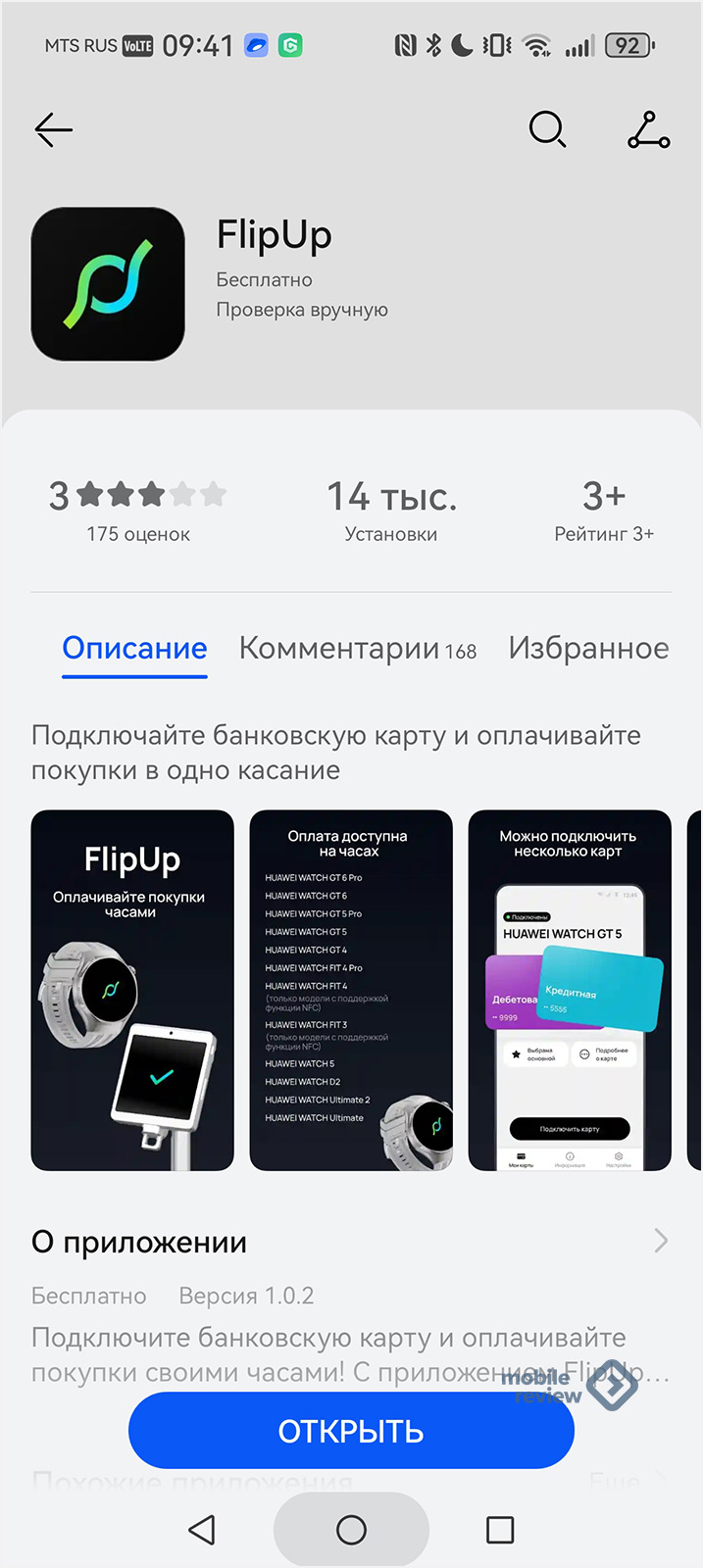 Первым появилось приложение FlipUp для умных часов Huawei. Сторонняя компания-разработчик, но все указывает на то, что тут есть связка со Сбербанком (эксклюзив работы только с этим банком, маркетинг и PR «Сбера» продвигает приложение). Если посмотреть на загрузки в AppGallery, то мы увидим довольно уверенный рост в первую неделю, около 14 тысяч человек загрузили приложение, что много. С другой стороны, Huawei — лидер в этой области, другие компании продают меньшее число умных часов.