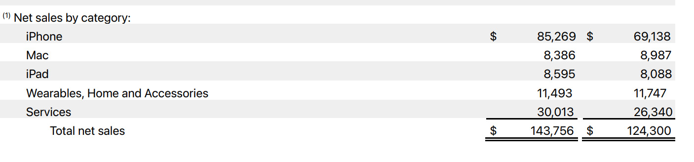 Посмотрите, как падали продажи категории ПК для Apple в предыдущем году (в денежном выражении, в штуках падение заметнее, так как росла средняя цена продаваемого ПК).