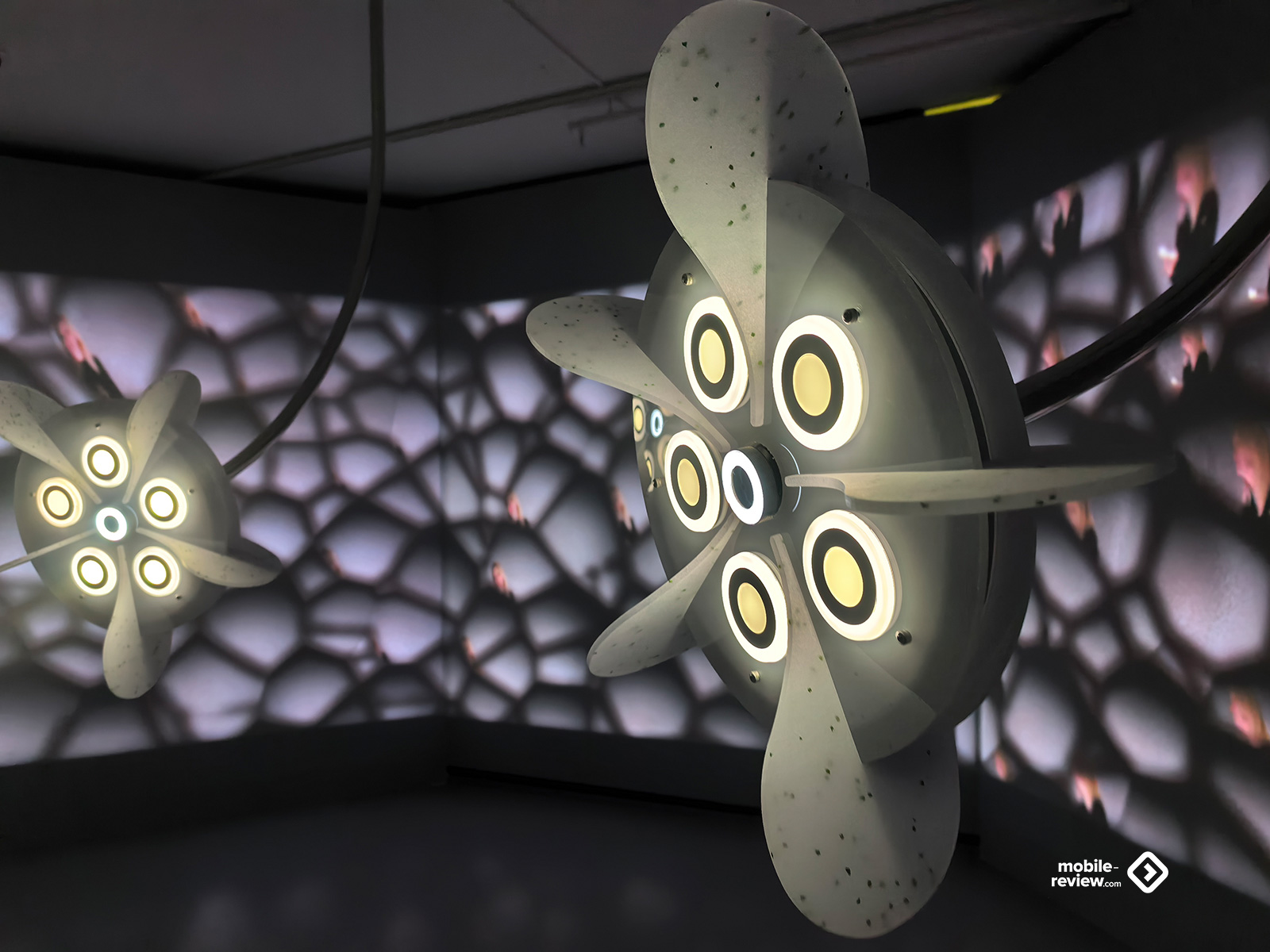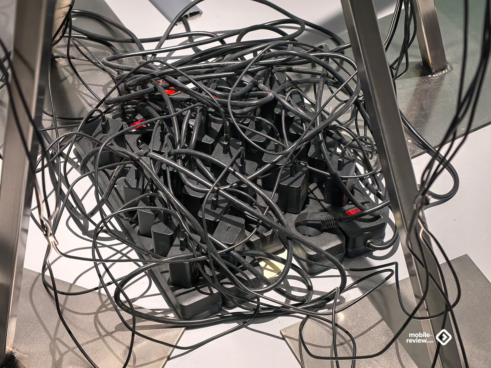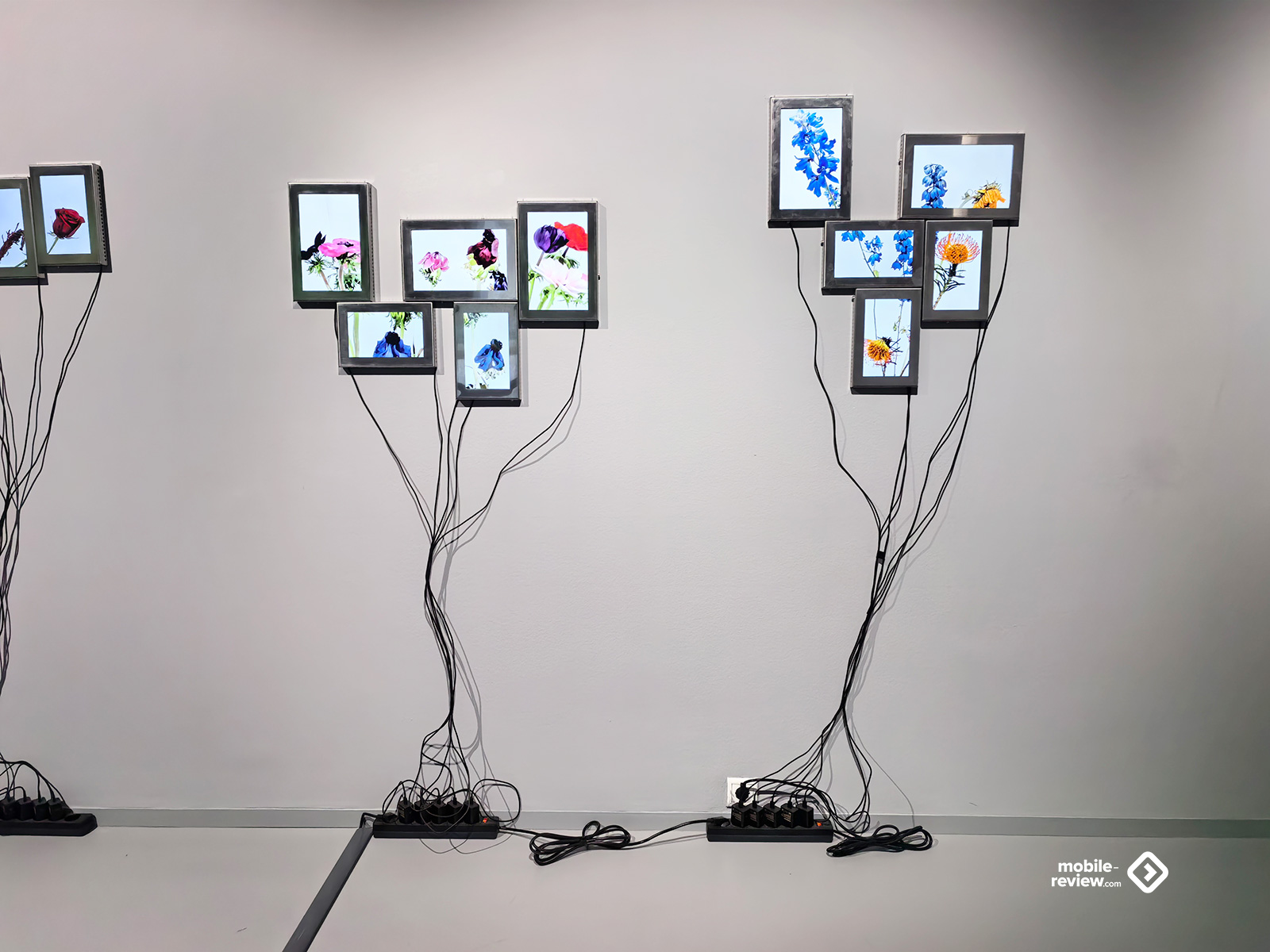 С любопытством рассматривал цифровые цветы, моментально определил по зарядным блокам, что тут использовали планшеты от Samsung, позабавило, как утыканы зарядками все разъемы на полу. Тоже своего рода искусство, точнее, изнанка оного.