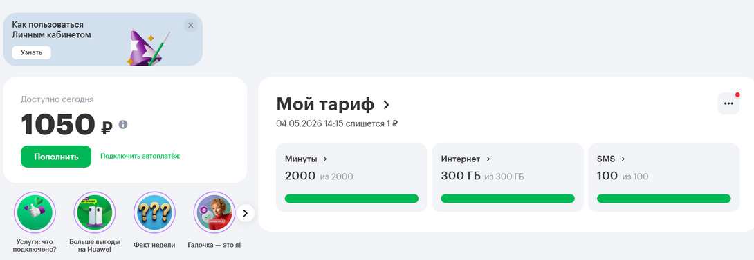 В «МегаФоне» на действия Т2 ответили просто: акция «Перенос тарифа» теперь доступна с другими параметрами, можно за 1 рубль в месяц получить 300 ГБ интернета, 2000 минут звонков, 100 SMS. Проверили, все это работает при условии переноса номера к оператору (если нет переноса, то через месяц стоимость уйдет на 400 рублей в месяц).
