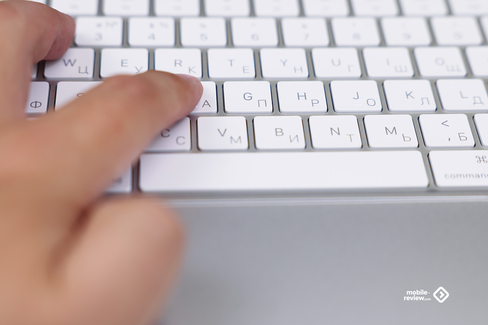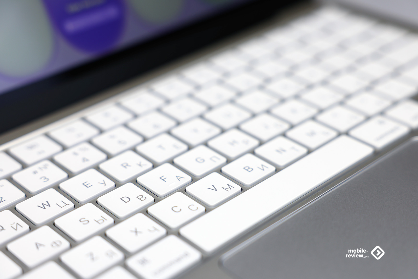 Размер корпуса меньше, чем у того же MacBook Pro, как результат, разнос клавиш меньше, они скучены. И для меня это не так удобно, не хватает пространства, руки располагаются ближе. Скорость набора не падает, но при длительной работе начинают болеть запястья от непривычного расположения. Конкретно для меня это минус, а вот для молодых людей такой размер клавиатуры скорее будет плюсом, да и не печатают они тексты в таких объемах.