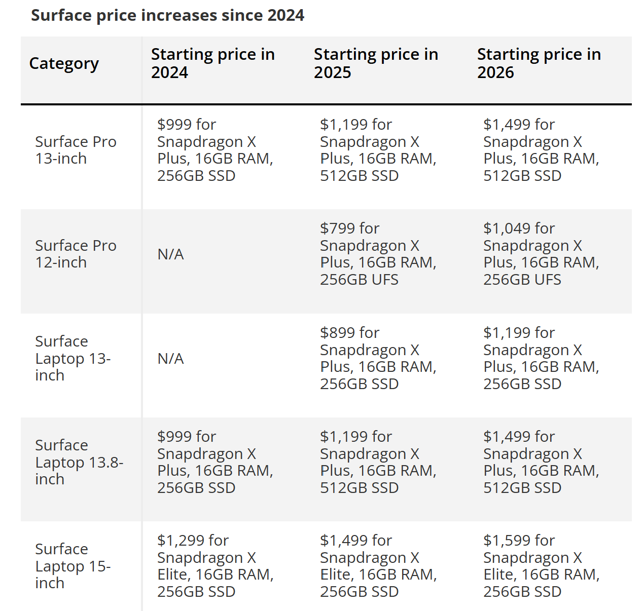 Давайте посмотрим в табличку, где приведены изменения цен в фирменном магазине Microsoft.