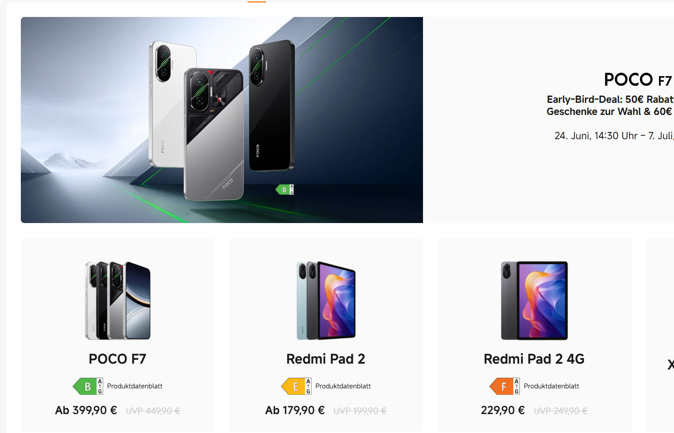 Однако я становлюсь большим поклонником этого нового европейского закона. Он работает сразу в двух направлениях. Во-первых, он сразу позволяет покупателю взглянуть сквозь маркетинг. Например, какой-то производитель может заявлять, что его смартфон супернадежный, а на наклейке будет низкая оценка. Сразу понятно, что дурят. Например, посмотрите, как теперь выглядит сайт Xiaomi в Германии: рядом с каждым смартфоном указан рейтинг-ссылка.