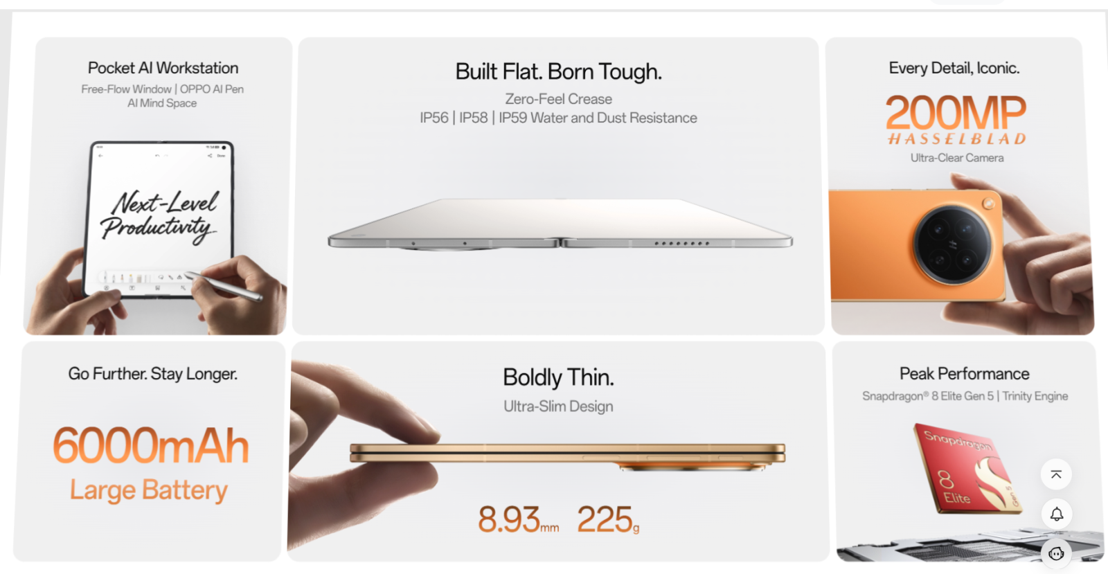 И тут на сцену выходит Oppo. Компания представила новый смартфон с гибким экраном Oppo Find N6. Этот смартфон обходит Samsung Galaxy Z Fold7 по всем фронтам:
