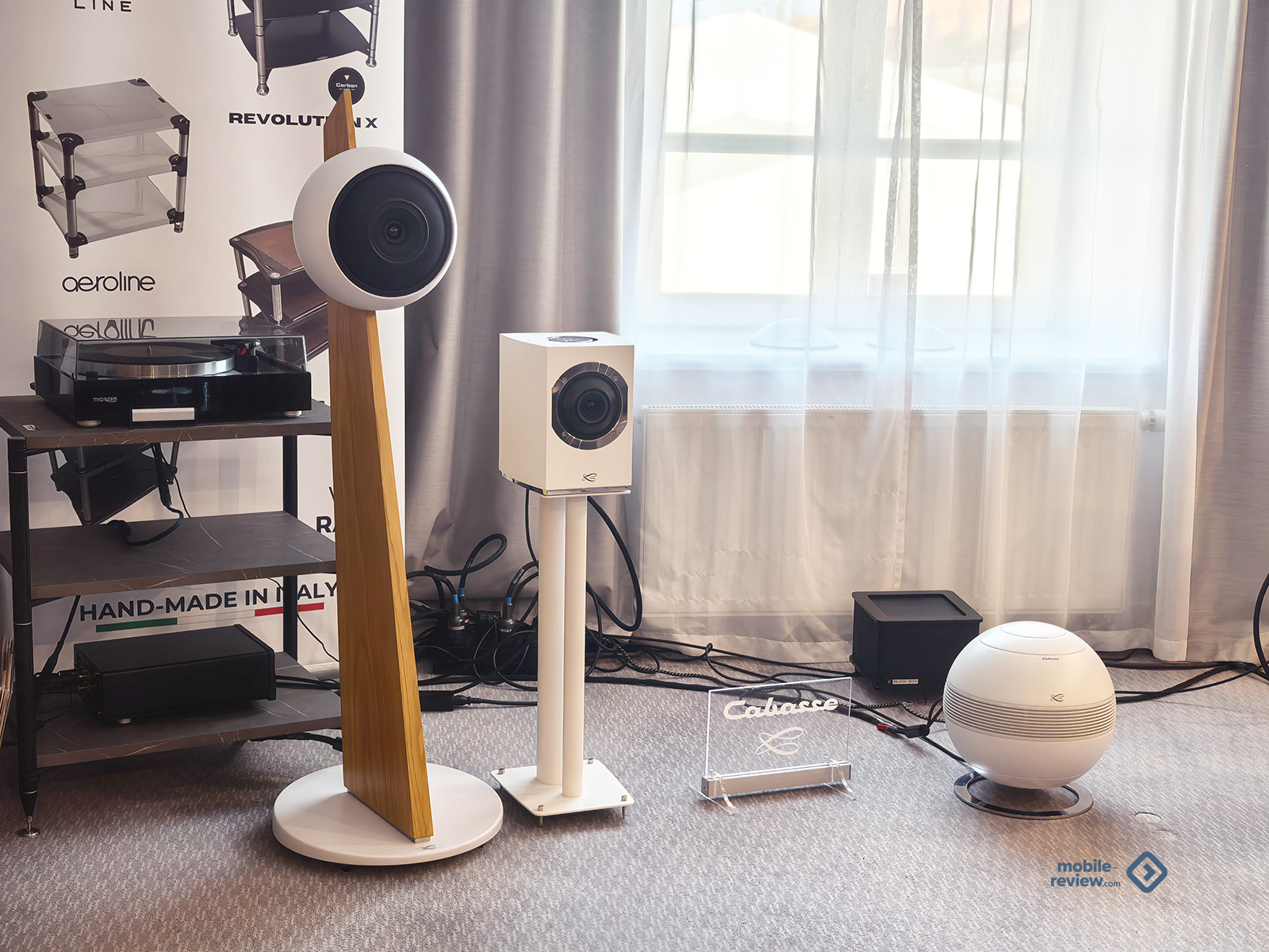 Сферические Elipson, ламповые E.A.T и пару мощных усилков с видимыми внутренностями оценить на слух не смог, но выглядели они весьма достойно! А вот B&O и странные шарики-цилиндрики от Architettura Sonora удивили плотным, насыщенным и очень сбалансированным звуком, который совершенно не вяжется с внешностью! Я, конечно, и раньше их слышал, но всё равно они оставили приятное послевкусие от посещения комнаты!