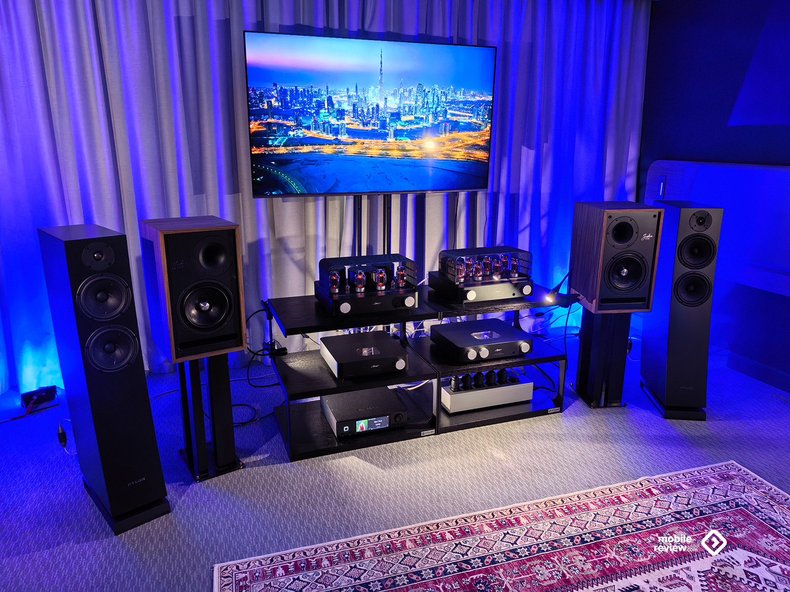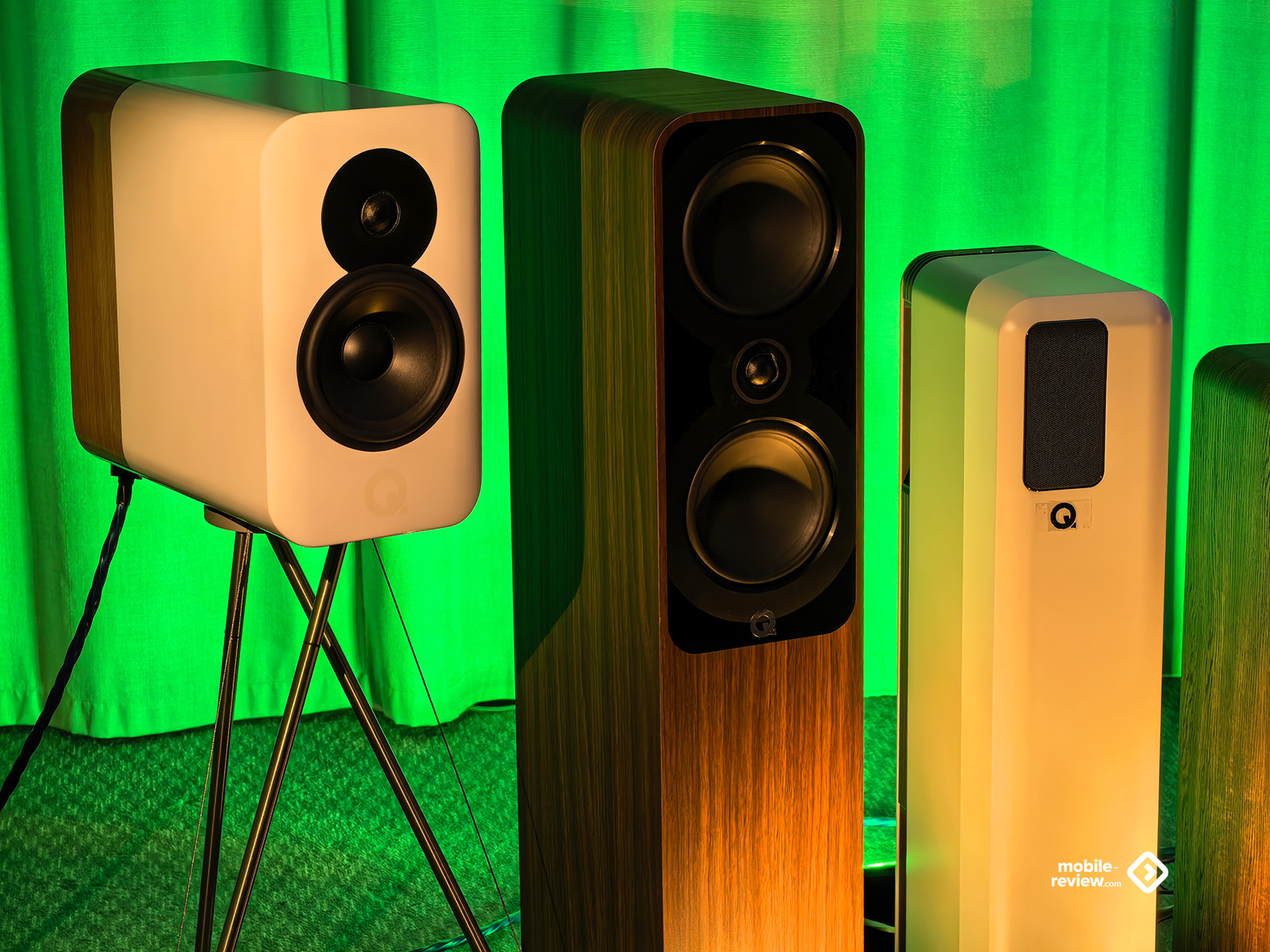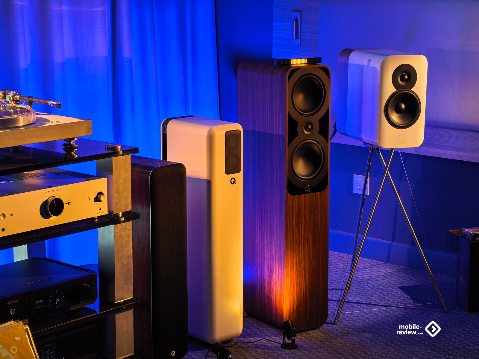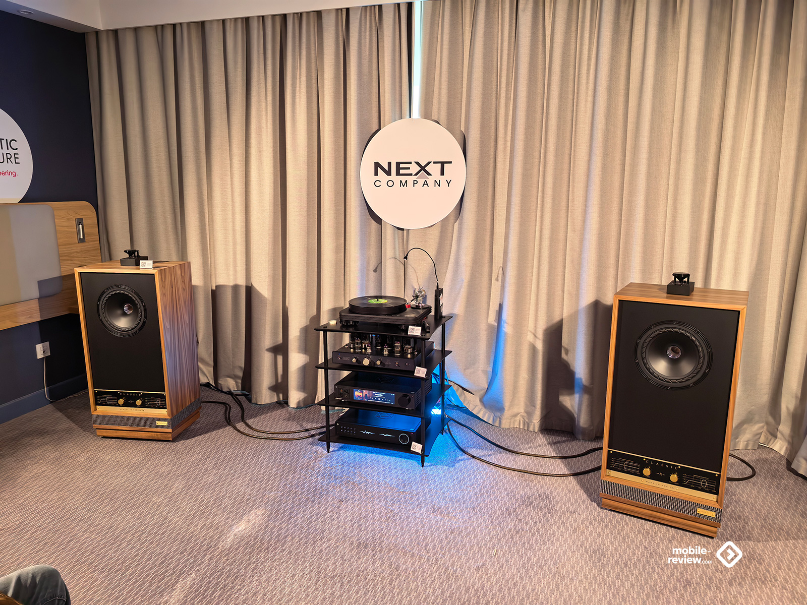 Я не мог обойти этот раздел стороной, так как некоторые вещи выглядят лучше, чем звучат. Например, две комнаты, в которых представляли VP Acoustics, выглядели очень нарядно, жаль, что фото не передаёт всей атмосферы. Что же до звука, то я не фанат баса, откровенно лупящего по ушам и забивающего всё впечатление. Да, настройка в этот раз откровенно слабая. Аналогичная проблема была и у Vienna Acoustics от Pult.ru: очень агрессивный и резкий звук, превращающий классические роковые композиции в нечто неудобоваримое, но при этом антураж, импровизированные кулисы на входе, неон и всё такое. Получше обстояли дела у Q Acoustics: приятная комната с подсветкой, приятные по виду колонки, но, конечно, звук у них не дотягивает по уровню до их стоимости. Субъективно, согласен, да и упор они делают на беспроводное подключение, но всё-таки простенько звучит. Слабовато. В ту же категорию могу отправить французские Cabasse, которые выглядят интересно, но звучат абсолютно не на свои деньги.