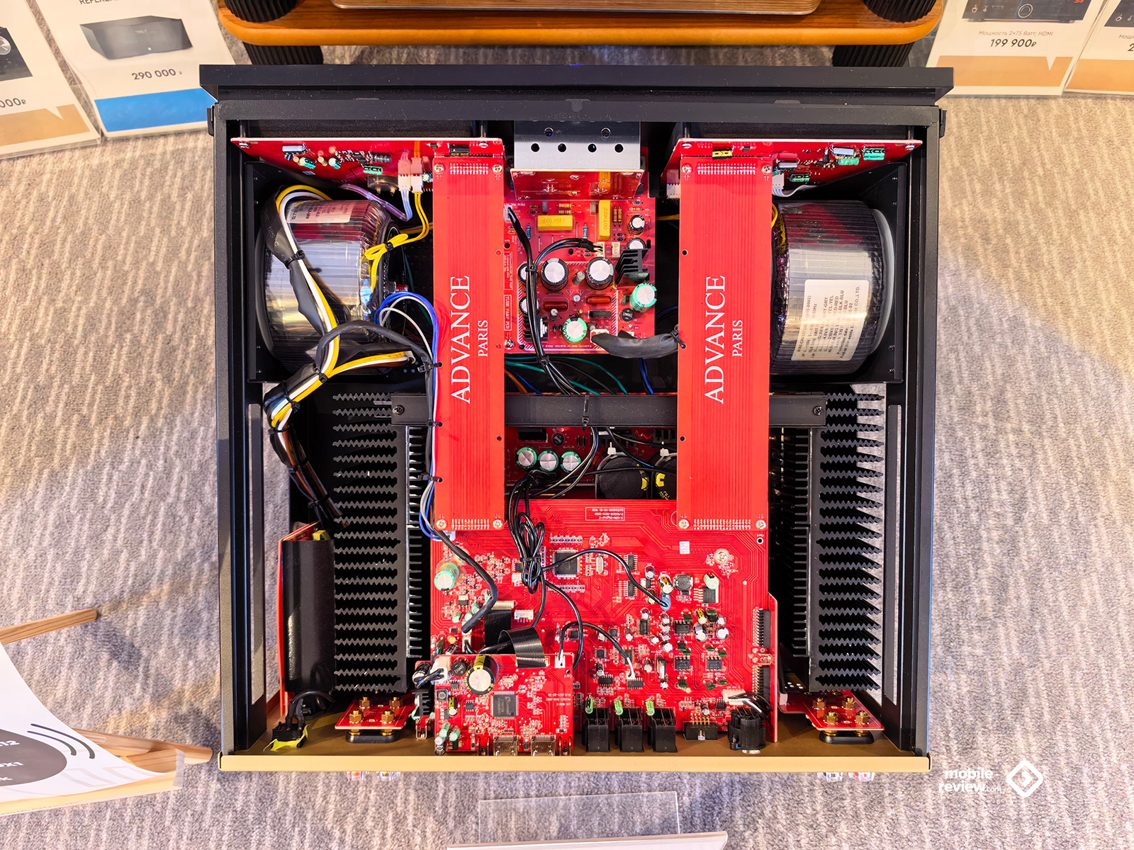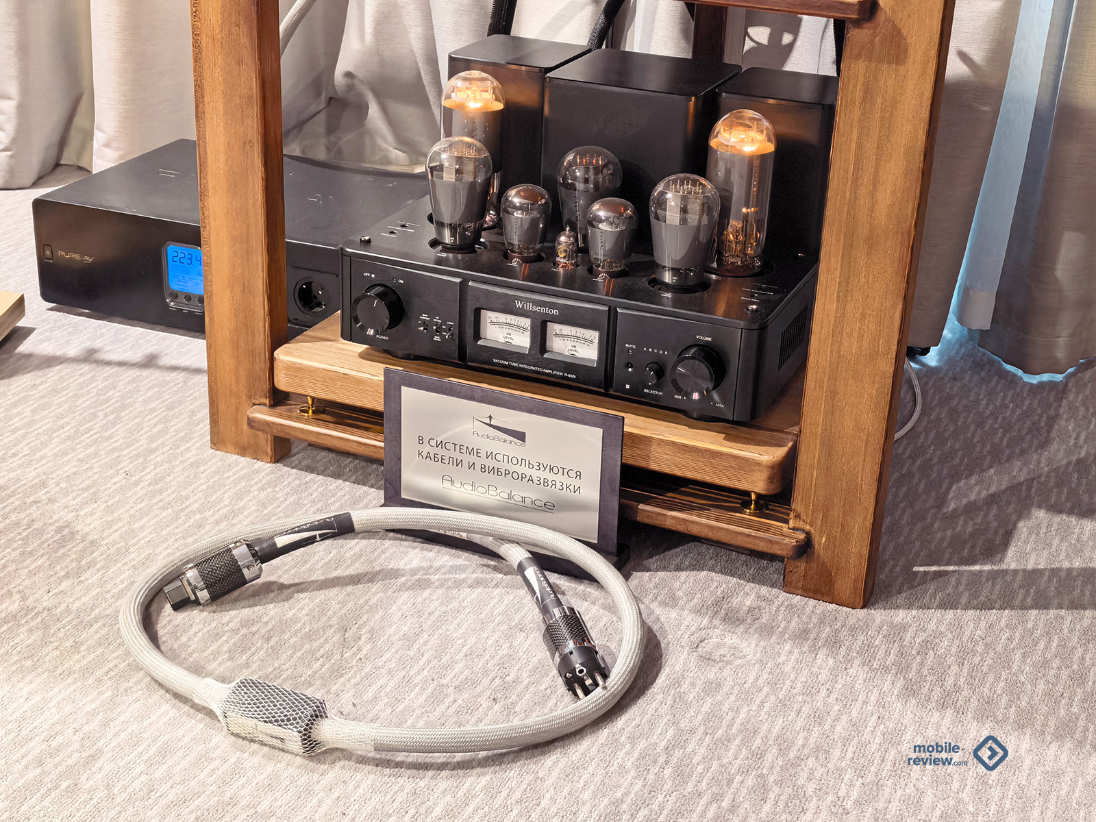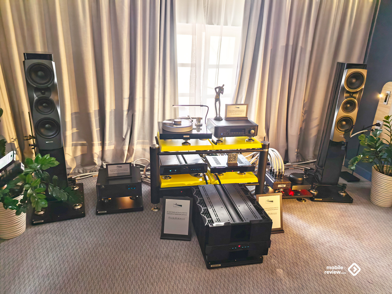 Ну какая аудиовыставка — и без толстенных кабелей? Но даже их было не так и много: только в зале для прослушиваний с супердорогим «сетапом» плюс в одной из комнат выставлялась продукция AudioBalance. Кабели от Nordost тоже были, но, за исключением лекции-презентации, на них не делали заметного акцента. Пара мощных усилителей, стоящих на специальных платформах-виброразвязках от Knecht, внушали уважение своими габаритами, но звучала система при этом довольно посредственно — опять же, проблема качественной настройки. Зато я увидел специальные утяжелители, которые предлагается ставить на верх колонки — чтобы предотвратить вибрации корпуса и не позволить им влиять на колебания твитера. Мол, и верхи становятся прозрачнее, и полётность увеличивается, и вообще благодать акустическая снизойдёт на всех. Не знаю. В тех условиях оценить адекватно разницу было затруднительно, так что остаётся просто поверить. Особенно за эту цену.