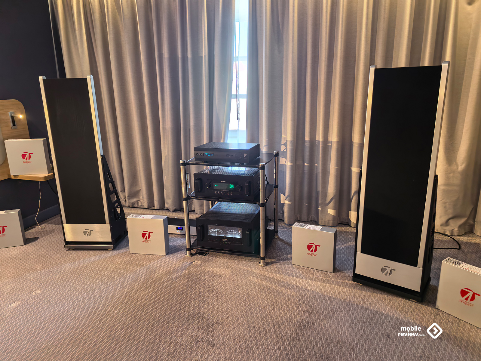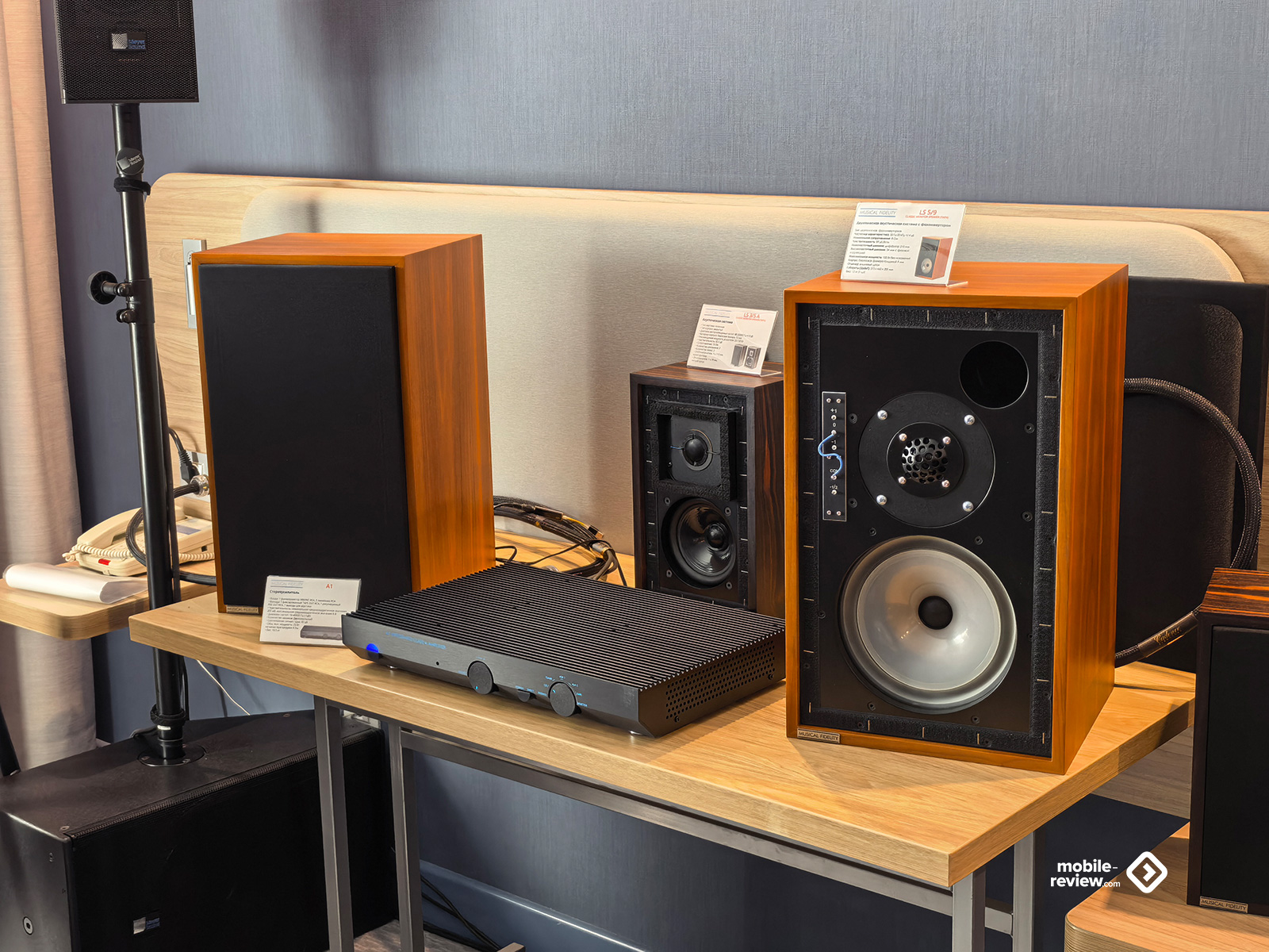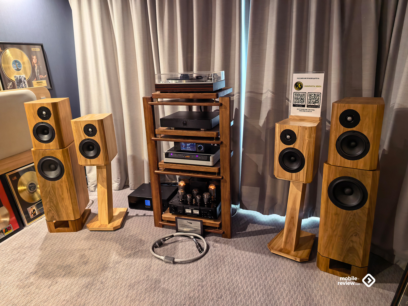Сюда попали все условно «стандартные» представители, среди которых я не увидел особо дорогой акустики типа Meridian Audio за 14.5 миллионов. В этот раз всё более скромно. Впрочем, тут были итальянские Airtech ATS-01 — гибридные динамическо-магнитопланарные колонки за 6.5 миллионов. И кабели соответствующей цены от них же. Звучали вполне неплохо, с отличным «сращиванием» двух разных типов излучателей, но ценник, конечно, всё равно вызывает некоторое недоумение. Для тех же, кому хочется изодинамического звука, но при этом нет свободных миллионов, предлагается очень достойный продукт от Magnepan, пусть и без дополнительного динамического НЧ-излучателя. Ещё из интересного — отечественный производитель «ПРОсто Акустика»: выглядит достаточно просто, динамики тоже нашего российского производства, но на классике и вокале система раскрылась потрясающим образом! Атаки, детали, переходы — всё прекрасно, но, что особенно любопытно, материал воспроизводили на дешевейших для сегмента Hi-Fi стримерах и ЦАПах стоимостью три-четыре тысячи рублей за каждый. И результат оказался более интересным и целостным, чем у некоторых использующих усилки раз в сто-двести дороже. Ещё одни отечественные производители «Лабиринты Звука» тоже показали вполне себе неплохой уровень, хоть и не так меня впечатлили. На стенде Aleks Audio традиционно кто-то громко разговаривал. Я не знаю, как так получается, но именно у них, на какую бы выставку я ни приходил, всегда будет двое-трое активных посетителей, которые что-то обсуждают во весь голос. Спокойно-уверенный звук от Wharfedale, узнаваемый детальный от электростатов Martin Logan и напористый от Martin Logan динамических. Интересные и целостные колонки от Canton противостояли резко-визгливым Focal, у которых верхняя середина и ВЧ скребли по ушам. Была и Radiotehnika, в достойном ассортименте представившая свои акустические системы, как активные, так и пассивные, разного класса и цены. Аккуратные Elipson Heritage, достаточно приличные и дорогие Fyne Audio, чем-то зацепившие, хоть и достаточно обычные по звуку TAD — вот, пожалуй, и всё, что вспоминается. То есть по факту из интересных открытий — только «ПРОсто Акустика», остальное уже слышали и видели. Ну, как минимум я слышал и видел.