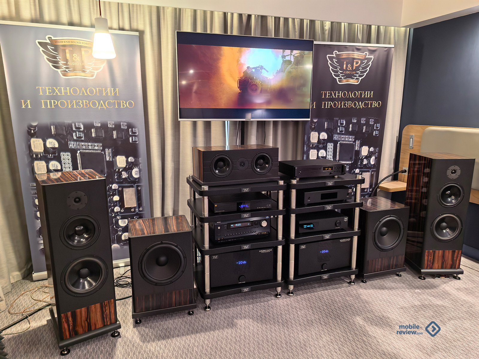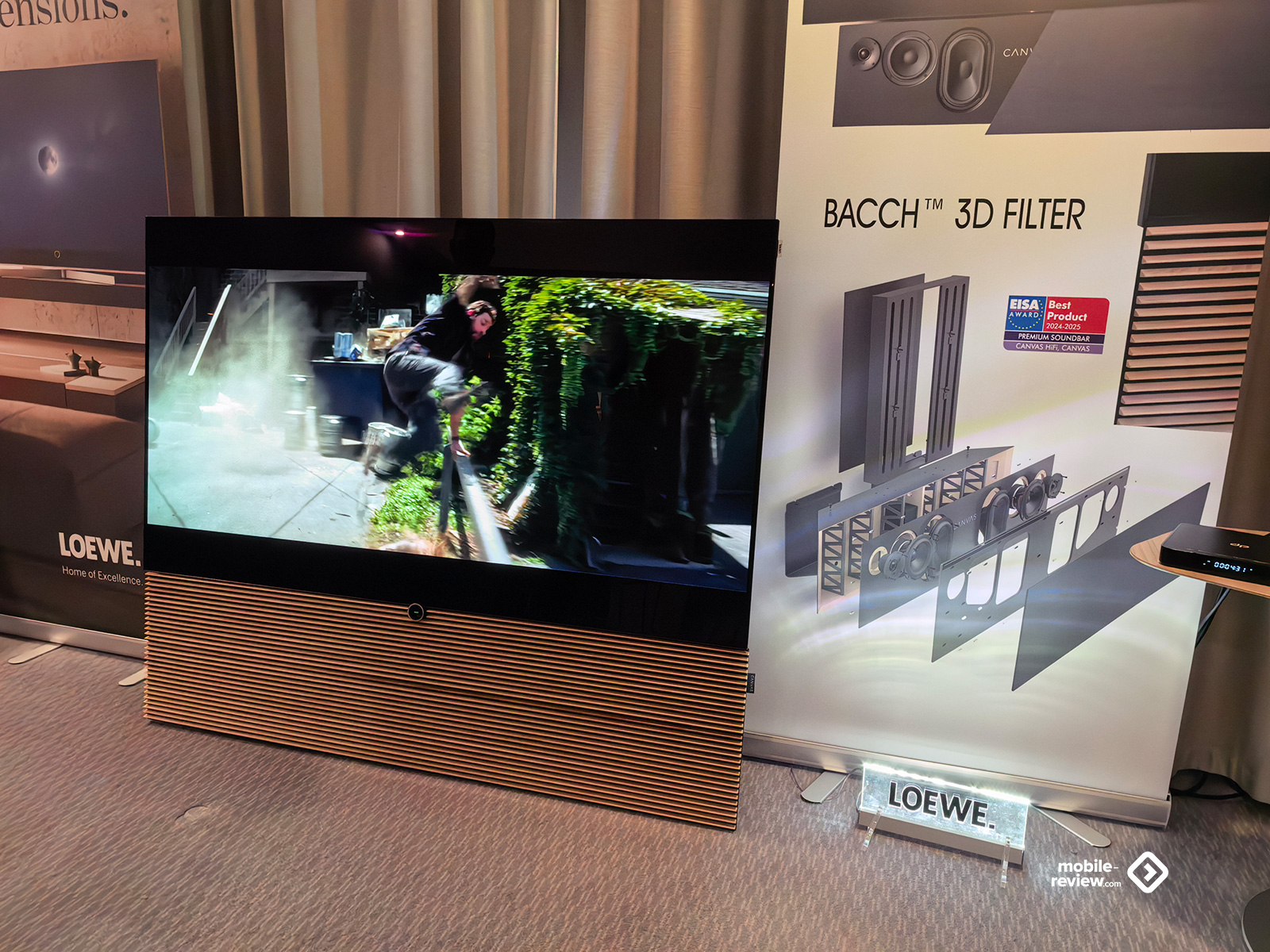 В прошлом году я видел активное продвижение китайских брендов акустики для домашних кинотеатров: подороже, подешевле — все они были по-своему интересными. В этот раз наблюдается полнейшее запустение. Из интересного — разве что уже виденный ранее телевизор от Loewe с многополосным встроенным саундбаром и технологиями от BACCH Labs, дающими отличный насыщенный объёмный звук в обычном помещении, неплохой универсальный саундбар от Naim и пара залов с проекторами. В первом крутили «Дюну» с нормальным, но не особо интересным звуком, а во втором, когда я зашёл, горел свет, на экране шарахались какие-то животные, а работники трепались друг с другом, не обращая на посетителей никакого внимания. В общем, полтора плюса: один — за Loewe, половинка — за более скучный Naim.