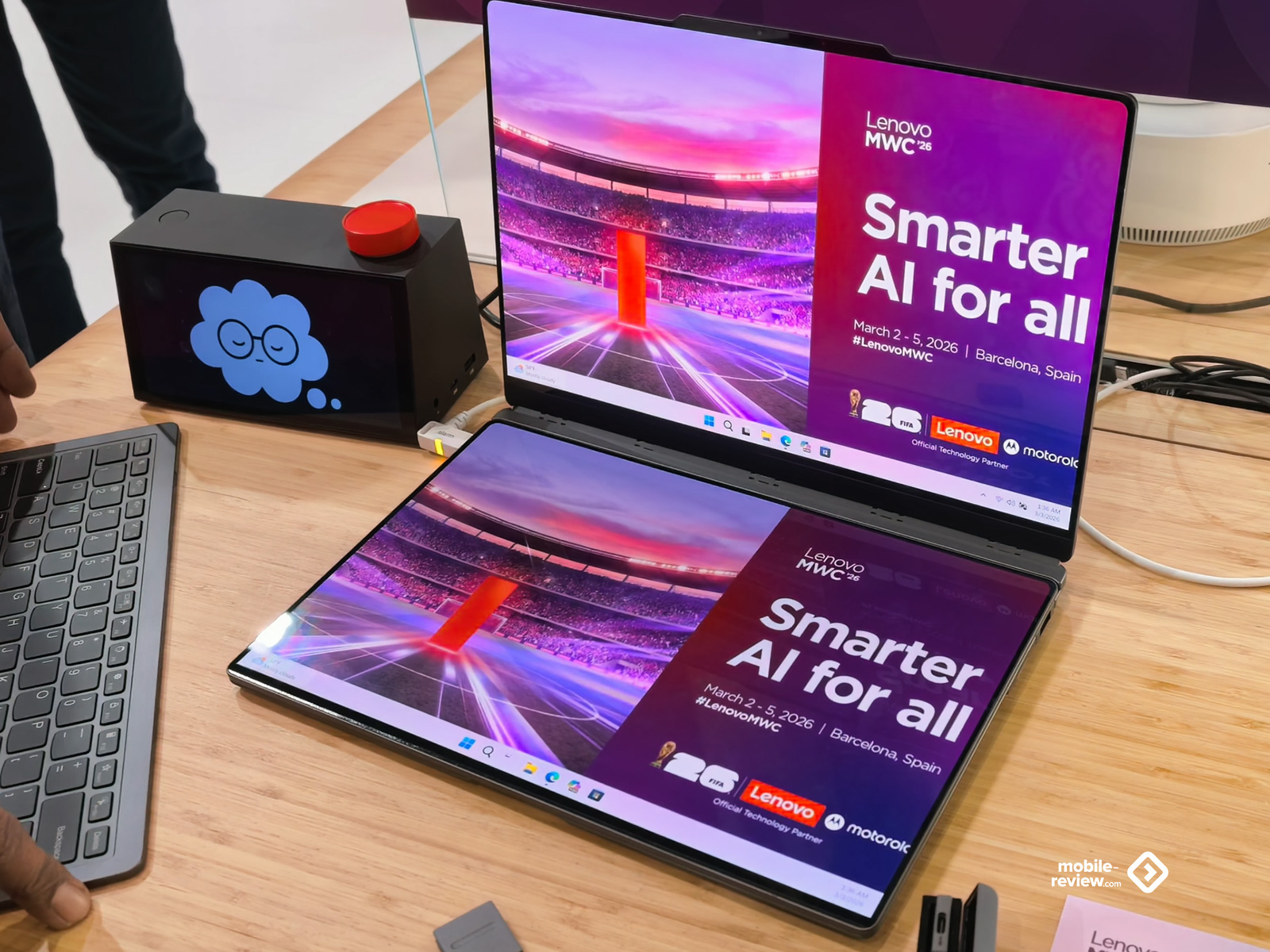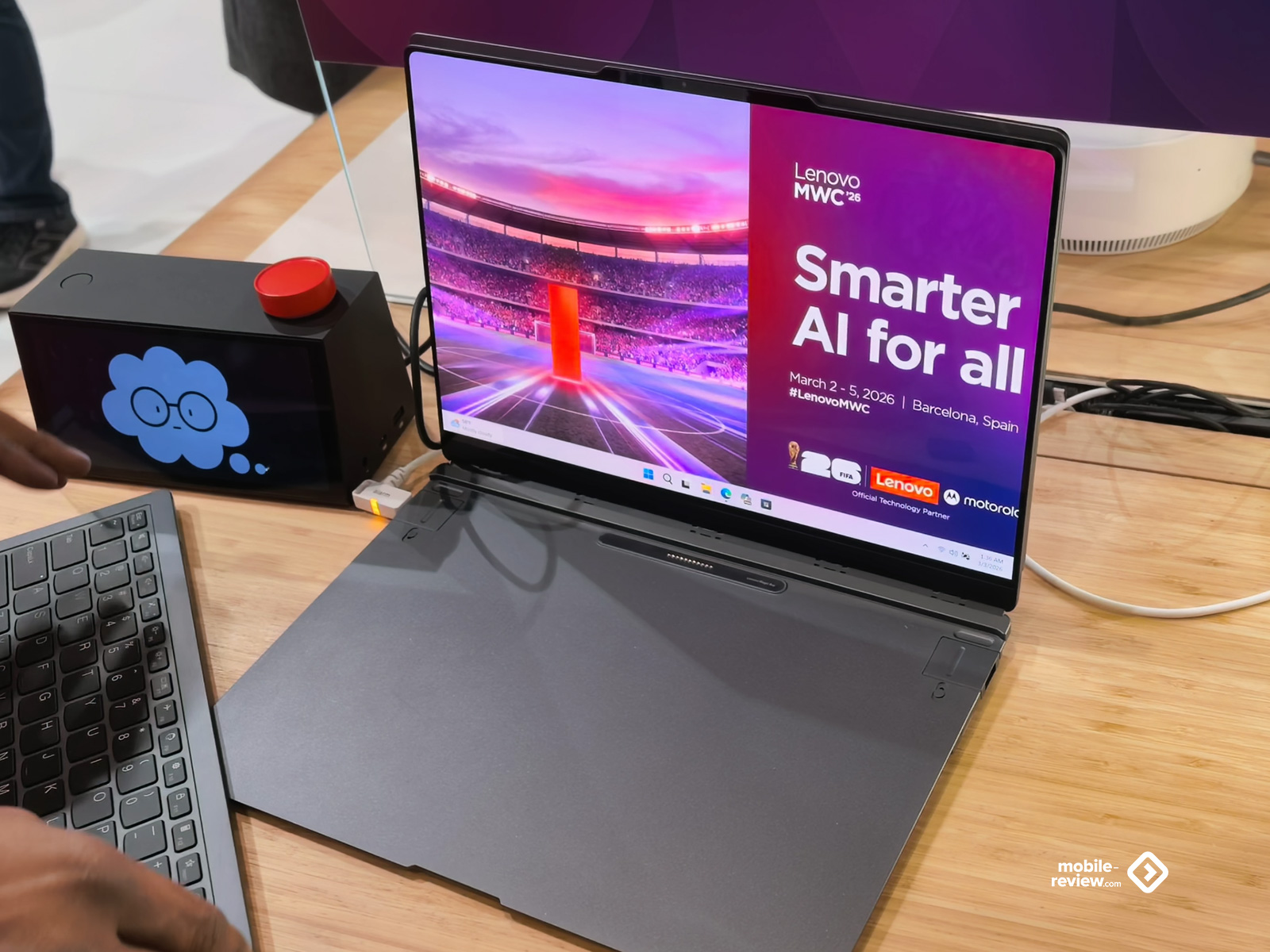 Начнем с того, что есть второй экран, вы можете прикрепить его снаружи и включить, чтобы транслировать окружающим что-то на нем. А можете отстегнуть клавиатуру и также поставить вместо нее экран. Причем клавиатура продолжает работать, даже будучи отсоединенной от корпуса.