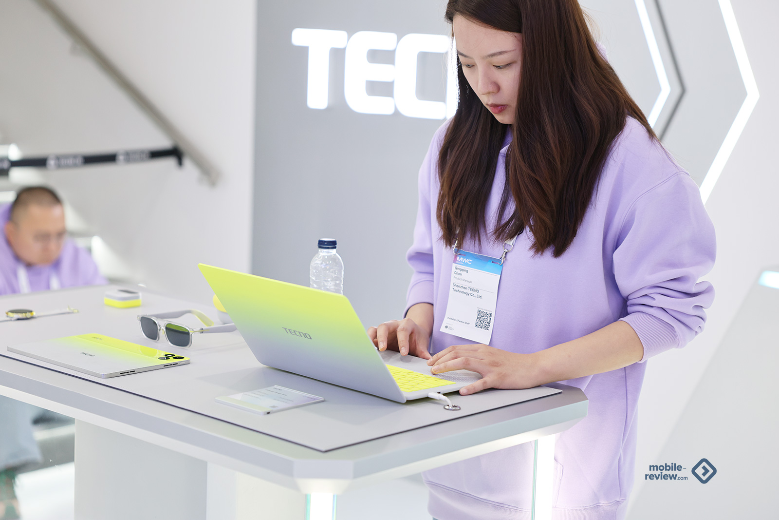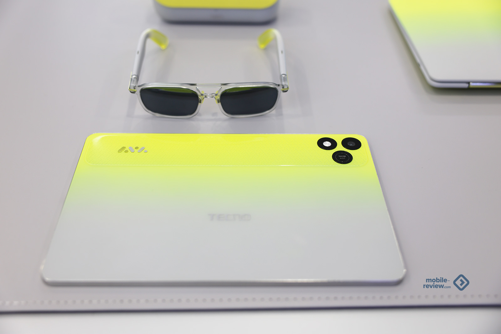 В Tecno не скупятся на различные прототипы, более живая история — это варианты массовых моделей, оформленных в желтом цвете: наушники, очки, часы, планшет и ноутбук. Ярко и интересно. И вот это как раз выглядит чем-то многообещающим, тем, как компании будут искать возможность привлечь покупателей, не тратя на разработку новых шасси заметные деньги. Комбинация разных материалов, игра с ними — вот главное умение недалекого будущего.
