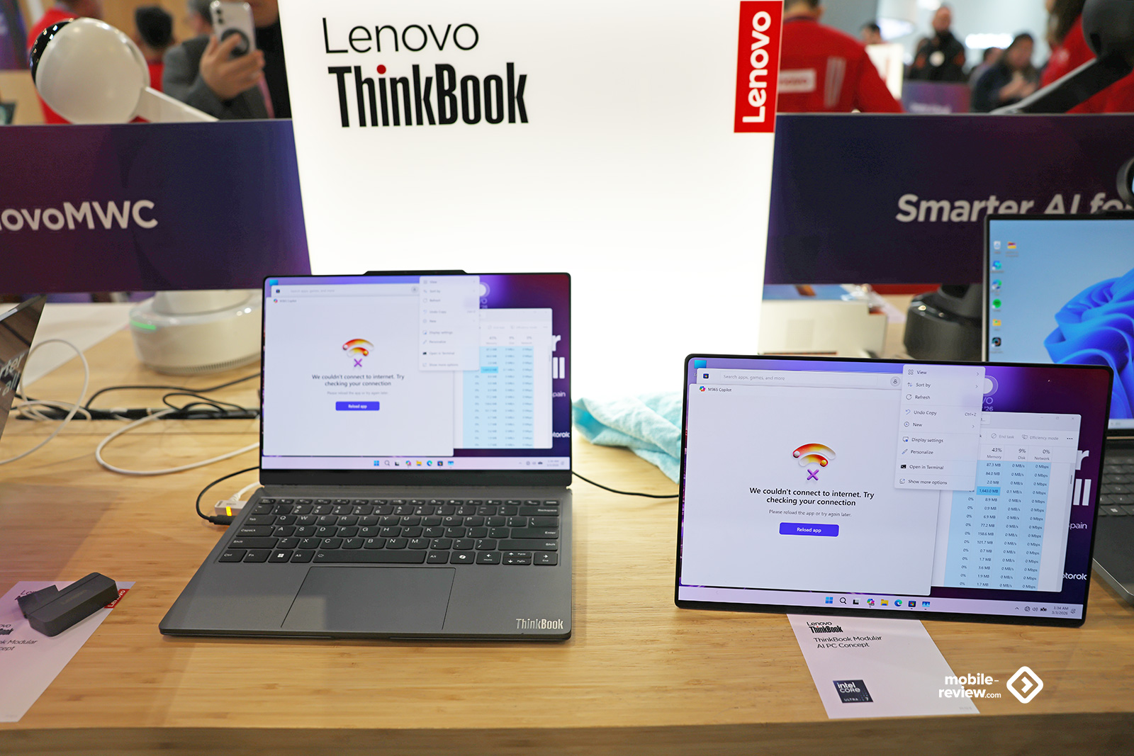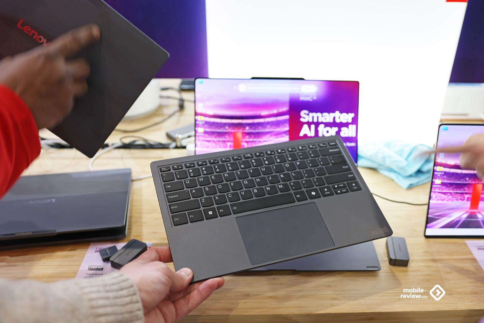Рядышком можно покрутить прототип Lenovo ThinkPad, в котором создали модульную конструкцию и напихали в нее все, что только можно вообразить. Внешне ноутбук выглядит как обычный ThinkPad, пока не приглядишься и не поймешь, что с ним все не так.