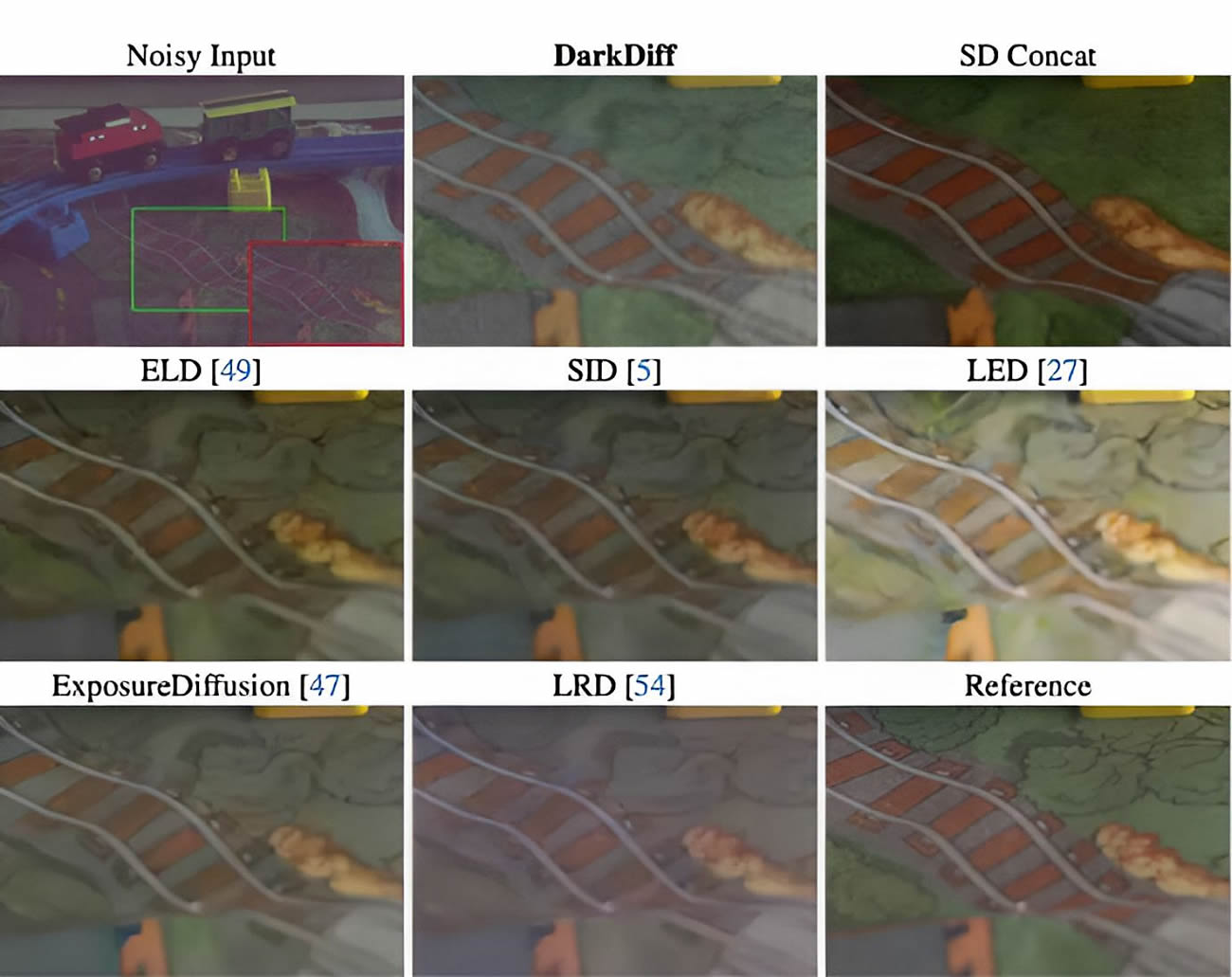 А вот компания Apple, кажется, всерьез взялась за наверстывание наметившегося было отставания в вычислительной фотографии. Успехи iPhone выходят за пределы данной рубрики, но речь сейчас не о них, а о том, что в принципе может стать доступным благодаря нейросетевым алгоритмам. Исследователи Apple в сотрудничестве с Университетом Пердью (Purdue University) разработали новую систему улучшения фотографий, сделанных на iPhone, в условиях крайне слабого освещения DarkDiff. В отличие от традиционных алгоритмов обработки изображений, которые часто «размазывают» детали и создают неестественные текстуры, система предполагает интеграцию диффузионной модели прямо в конвейер обработки сигнала камеры (ISP). Модель основана на адаптации предобученной генеративной диффузионной архитектуры, в частности, Stable Diffusion, и применяется не при постобработке, а на этапе преобразования «сырых» данных с сенсора. Это выглядит так: система сохраняет ранние этапы ISP, такие как баланс белого и умное достраивание недостающей цветовой информации (demosaicing), а затем применяет диффузионное моделирование к линейному RGB-изображению, напрямую формируя финальное sRGB-изображение. Так как используется механизм вычисления по локальным фрагментам снимка, это помогает ИИ меньше страдать от галлюцинаций и сохранять структуру объектов. Управление детализацией осуществляется с помощью метода CFG (classifier free guidance): чем выше значение, тем чётче текстуры, однако и выше риск артефактов. В тестах, проведённых на реальных снимках, сделанных ночью с выдержкой всего 0,033 секунды, DarkDiff превзошёл существующие на сегодня методы по качеству, оцениваемому на глаз. Однако метод требует значительных вычислительных ресурсов и пока не оптимизирован для работы на устройстве без подключения к облаку. Кроме того, несмотря на успехи технологии, авторы исследования не обещают скорого внедрения системы в iPhone, а также указывают на трудности с распознаванием неанглийских надписей в темноте.