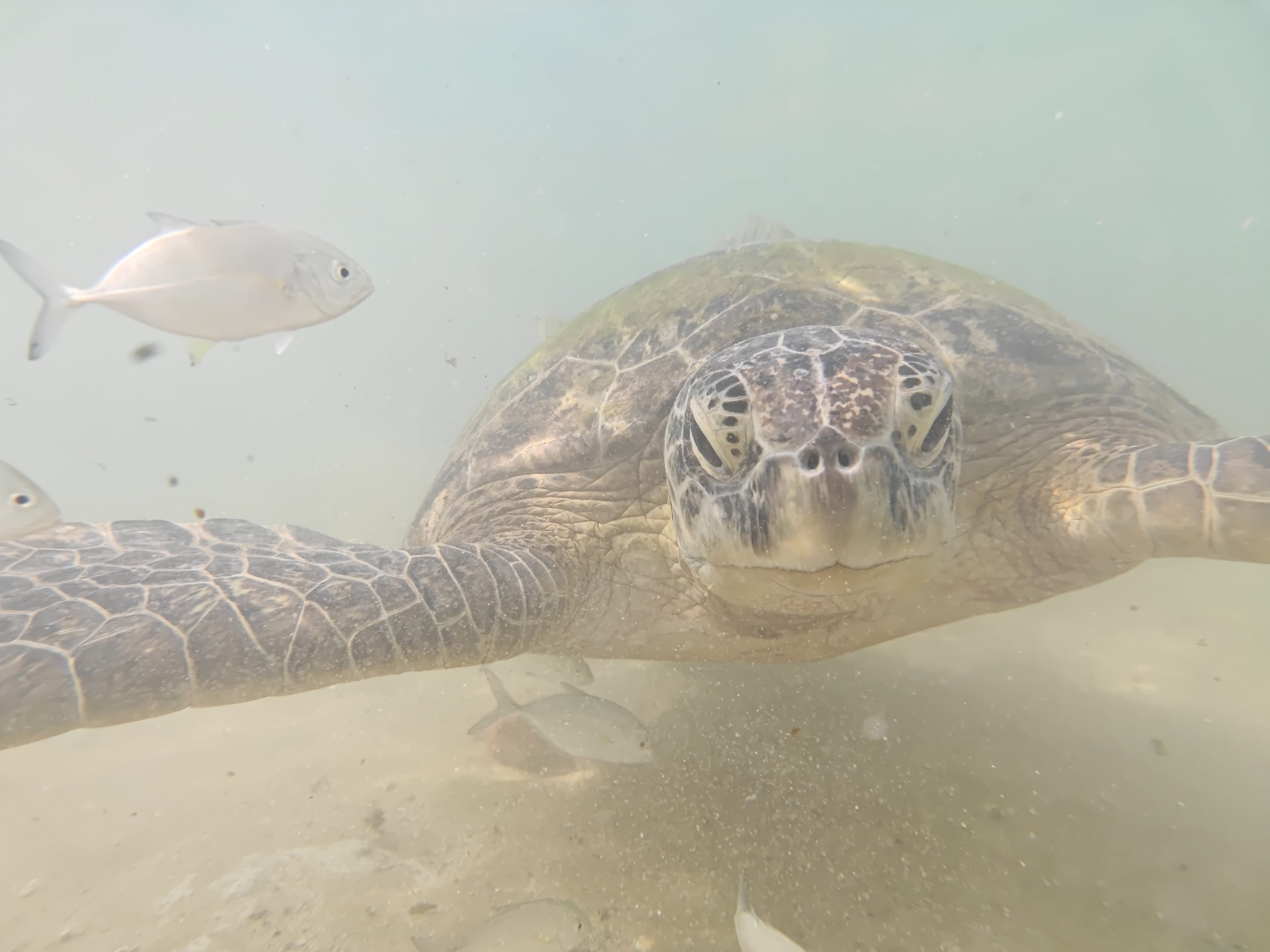 У смартфона есть сертификация IP69K с пометкой, что телефон выдержал погружение на глубину 2 метра в течение 30 минут. Так что на протяжении отпуска я постоянно плавал с маской и пытался снимать морских черепах. Realme GT 8 Pro выдержал. У телефона есть классный режим подводной съемки, при включении которого экран блокируется, а все управление осуществляется с механических кнопок.