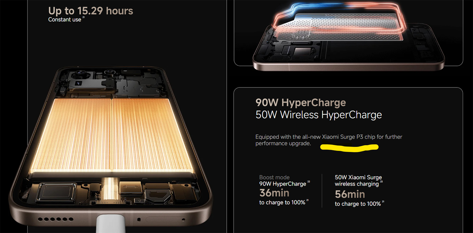 Например, почему Samsung не ставит в смартфоны супербыстрые зарядки 100 Вт? Ответ прост: это дорого. Посмотрите на Xiaomi. У Xiaomi 15T Pro быстрая зарядка 90 Вт. Чтобы все работало надежно, Xiaomi сделала два дополнительных процессора: один следит за зарядкой, другой — за батареей. Батарея, кстати, обложена кучей различных датчиков, которые следят, чтобы не было перегрева. Плюс Xiaomi предусмотрела систему охлаждения для батареи.