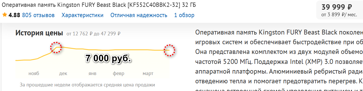 А вот тут начинается самый сюрреализм, ради которого я и затевал весь этот разговор. Оперативная память превратилась в какой-то аналог криптовалюты: она может улететь в космос, а потом внезапно рухнуть на землю, пугая всех держателей. За период с ноября прошлого года по январь нынешнего стоимость DDR5 удвоилась, а на некоторые позиции взлетела на сотни процентов. Более того, в начале года комплект памяти на 32 гигабайта, который летом 2025-го стоил 12-15 тысяч, вдруг стал оцениваться в космические 45-50 тысяч рублей. Почувствуйте разницу, как говорится. Но об этом мы уже писали.