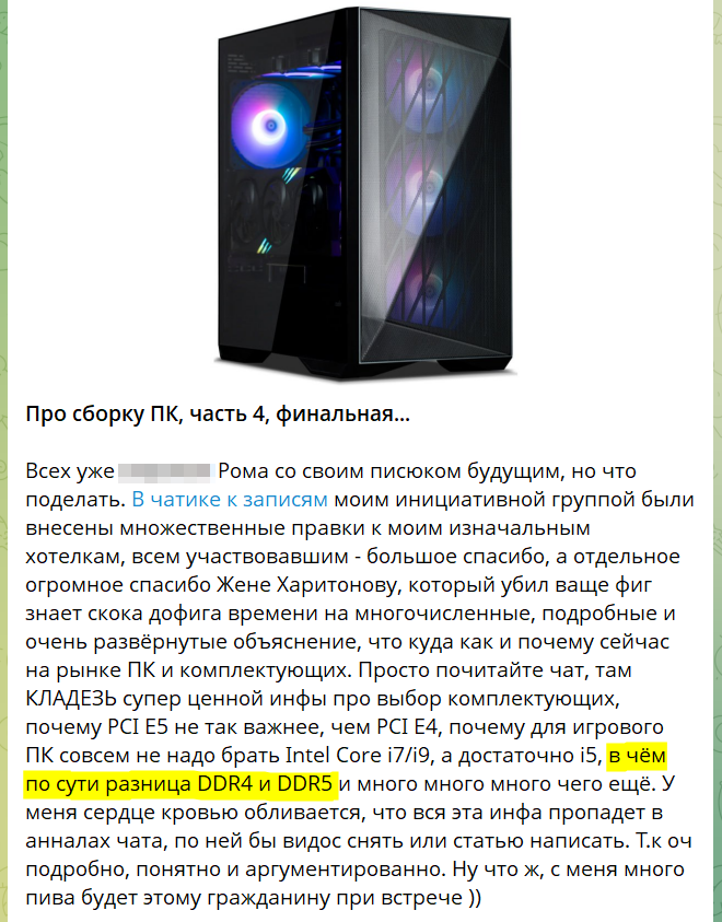 И вот тут возвращаемся к Роману и его желанию приобрести DDR4 (тут скорее внешние «факторы» –– слишком много советчиков). На первый взгляд кажется: ну да, DDR4 подорожала «всего» на ~50% процентов против сотни у DDR5. Экономия тут ложная. Современные платформы уже заточены под более высокие скорости и тайминги DDR5, и в долгосрочной перспективе брать морально устаревший стандарт в новую сборку в 2026 году — это просто ставить себе палки в колеса, ведь это значит покупать материнскую плату, которую невозможно будет проапгрейдить. Да, сейчас разница в цене есть, но она уже не такая разительная, как была год назад, а задел на будущее у «пятерки» совершенно иной.