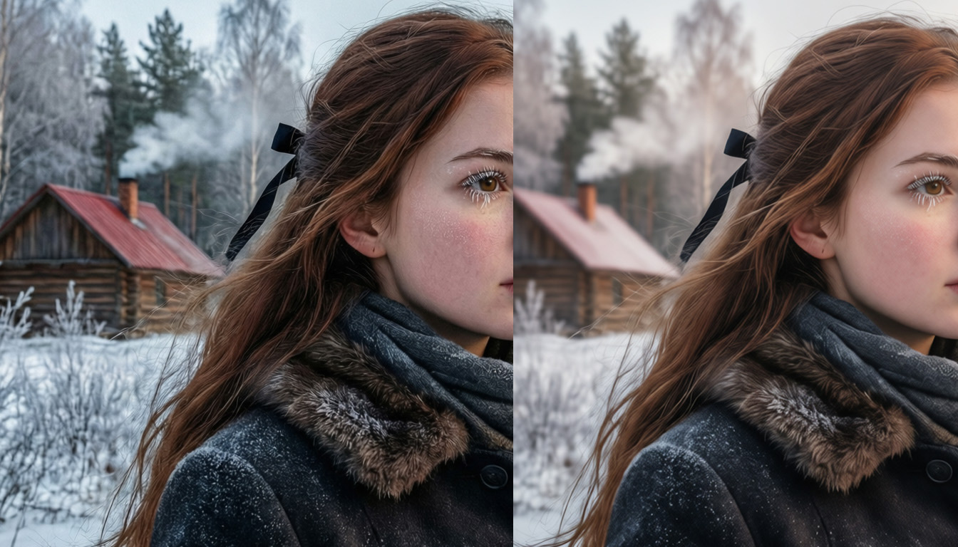 Добавление деталей — один из главных поводов для критики ИИ. И да, здесь есть с чем согласиться. Иногда алгоритмы откровенно перегибают палку: дорисовывают лишние зубы в улыбке, добавляют волос там, где их почти нет, делают лицо слишком «пластиковым».