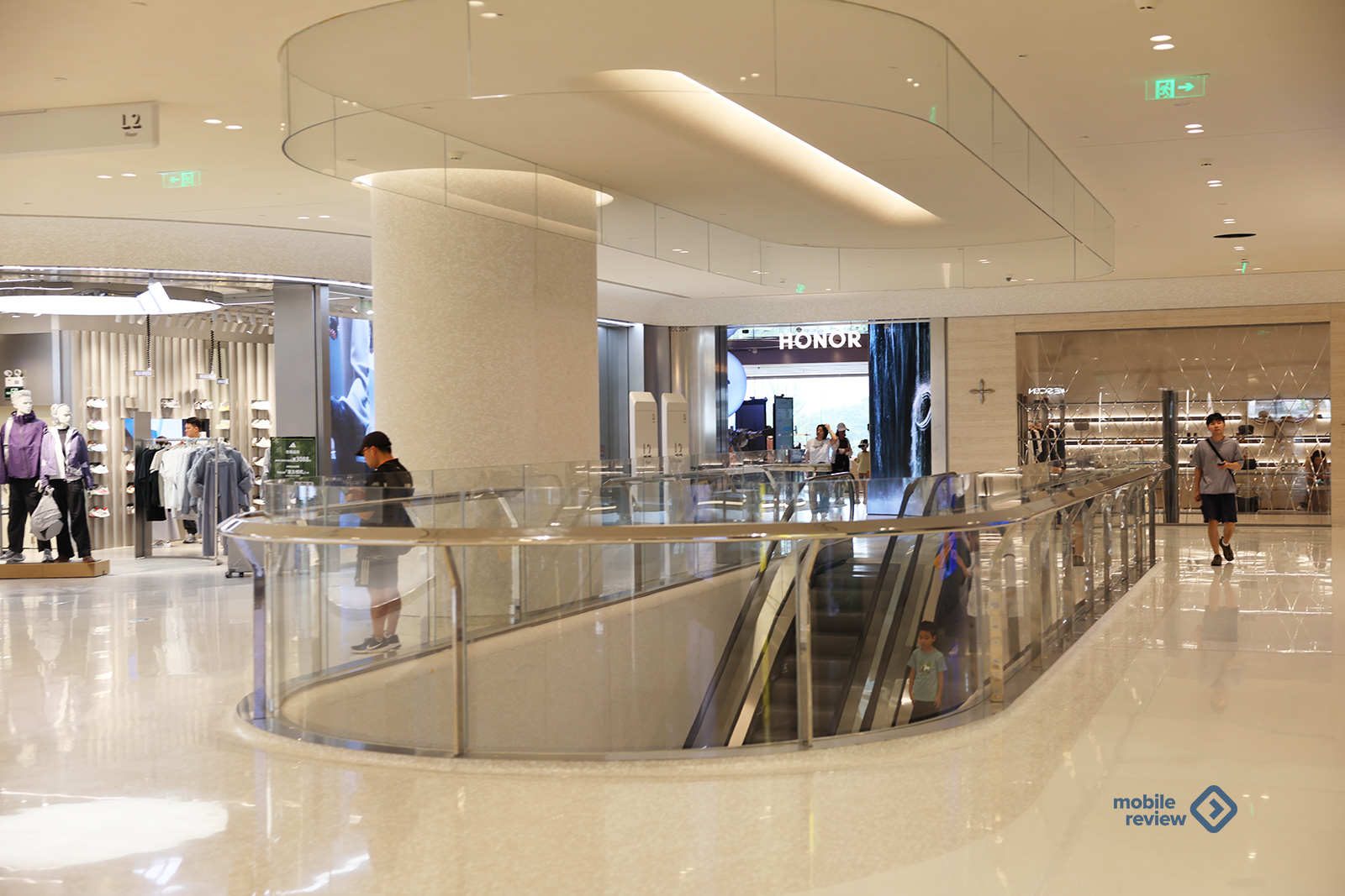 Мы с коллегами трижды прошли вдоль и поперек разные этажи комплекса, магазин не находился никак. Поднимались и опускались на разные уровни, попали на парковку, спрашивали окружающих и тех, кто работает в магазинах. Тщетно. Нам никто не мог показать, где находится магазин Honor. Практически два часа ушло на блуждание по торговому центру, рассматривание зданий, попытки по одной-двум фотографиям витрин магазина обнаружить, где он спрятался. Путь был долгим, но в итоге мы наткнулись на вывеску Honor, которую так долго искали.